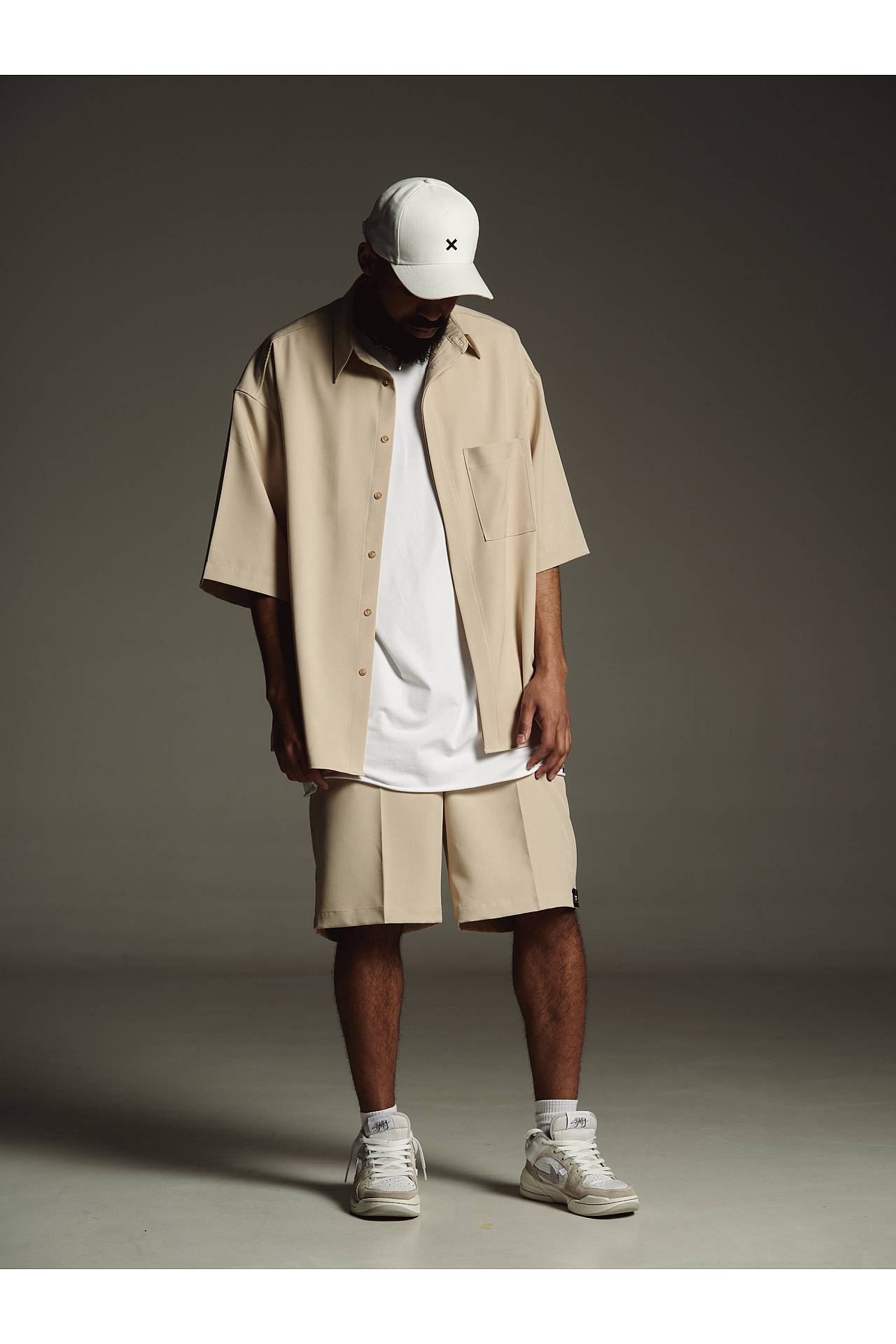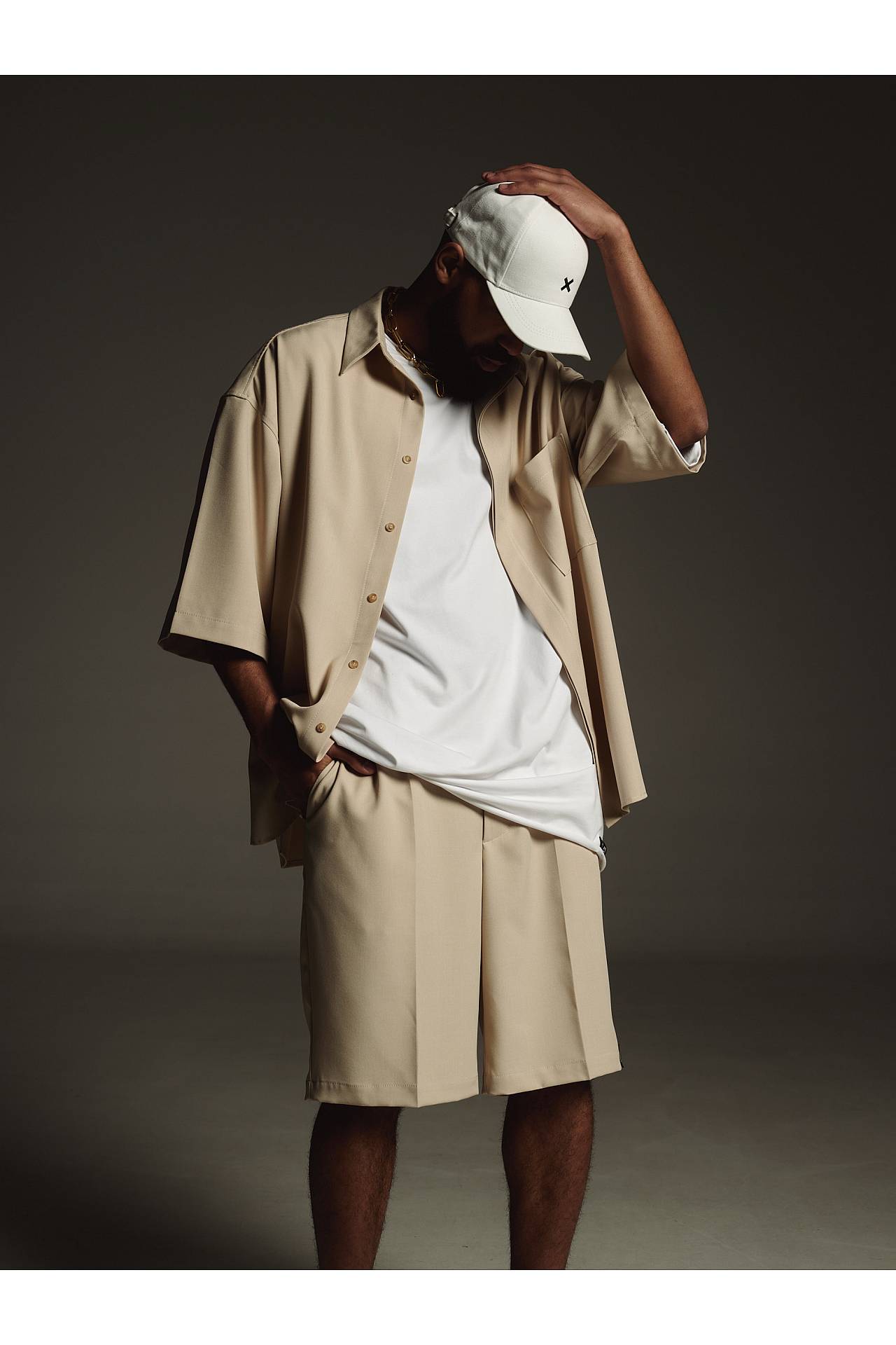 Классические брючные шорты широкого кроя с молнией YKK и двумя матовыми пуговицами, имеют карманы сзади и по бокам, а также классическую декоративную стрелку спереди.