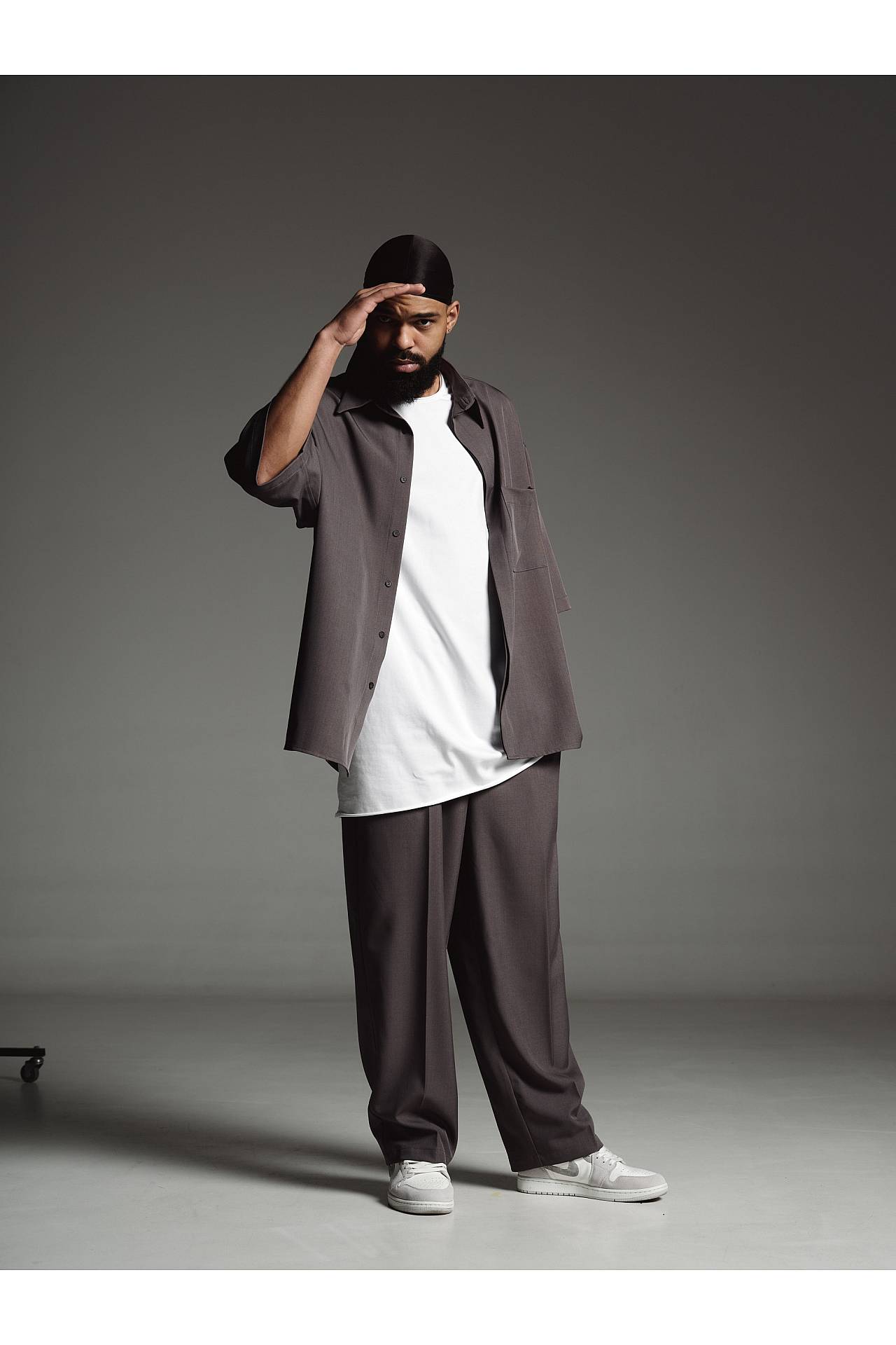 Для полноты образа брюки дополняем рубашкой из сета Soft Graphite и белым лонгсливом DIFFERENT ONE или белой футболкой [salt] для контрастности или черной [onyx]