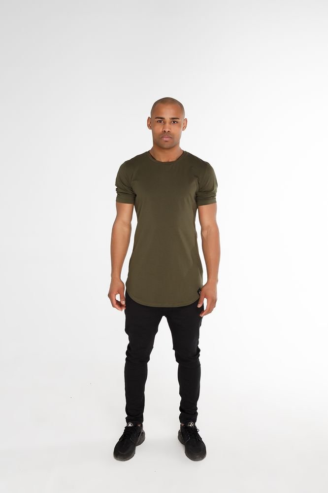 Men's basic t-shirt with a round bottom khaki