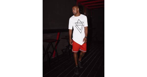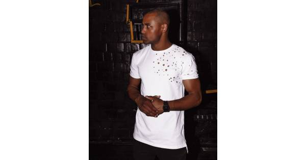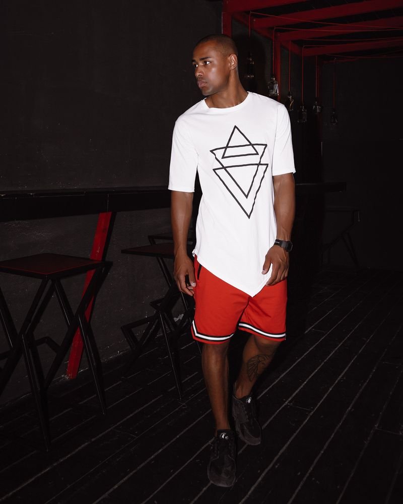 Mens t-shirt with print and sharp bottom white