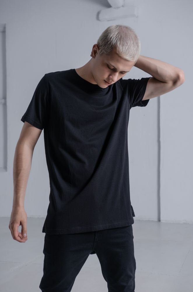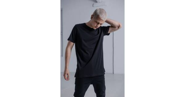 men's t-shirt with print and sharp bottom black
