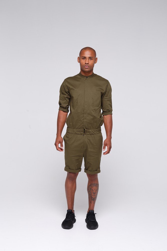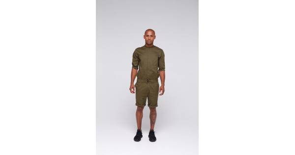 Overalls shorts for men without collar - green