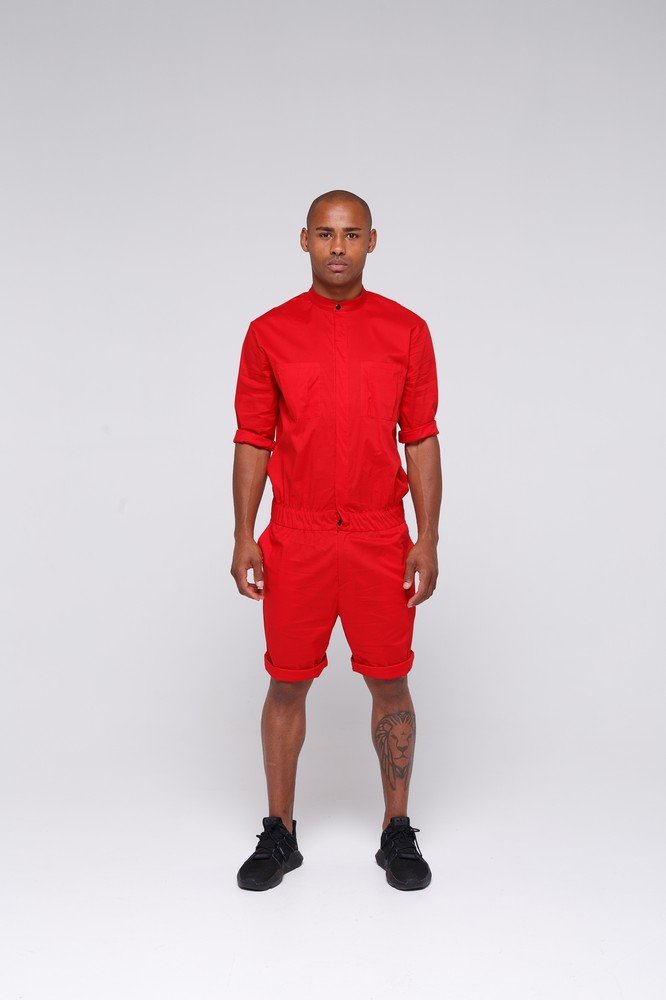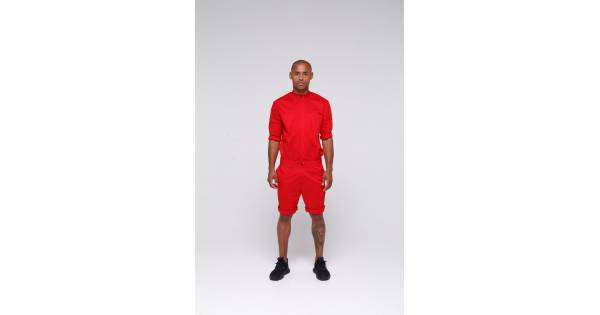 Overalls shorts for men without collar - red