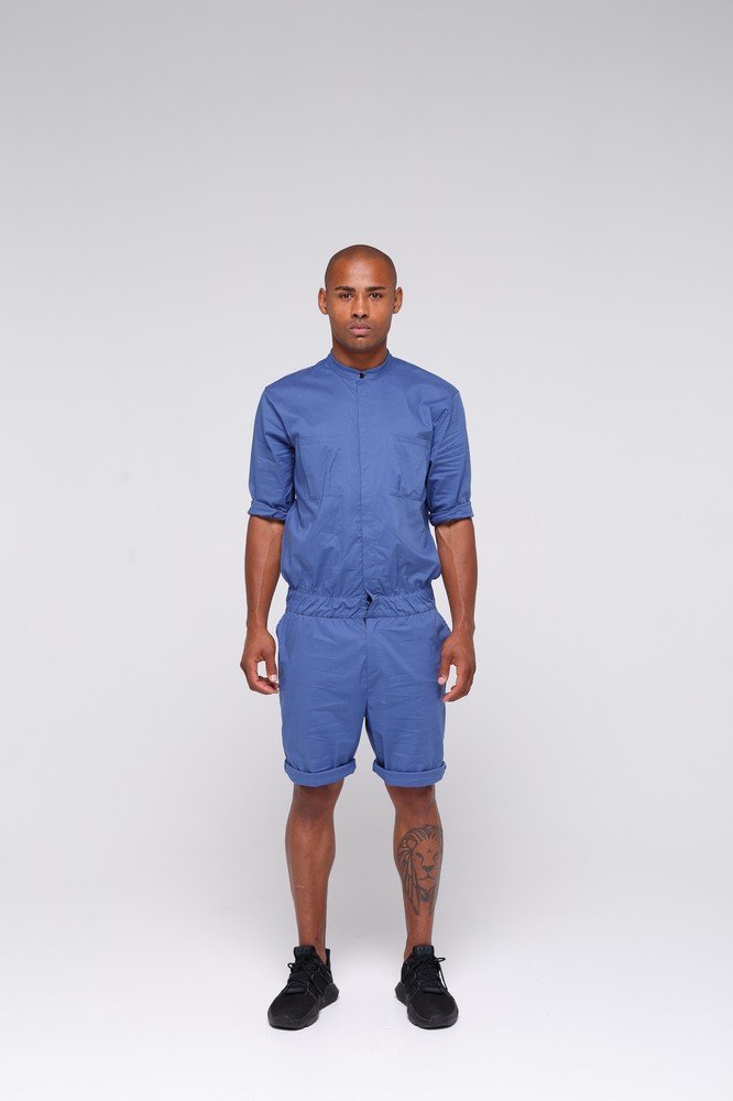 Overalls shorts for men without collar - blue