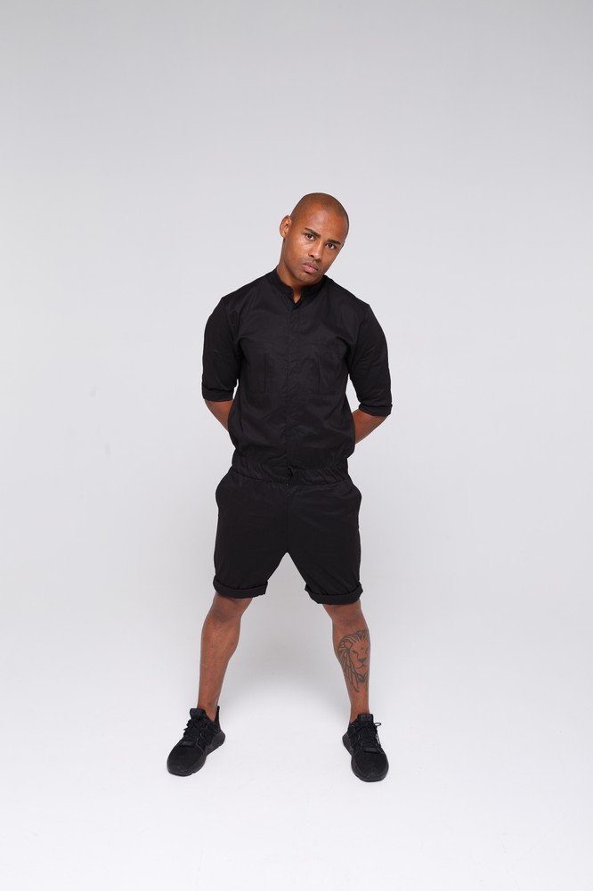 Jumpsuit Men's Collarless Shorts - Black