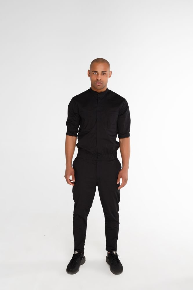 The overalls are man's sports black