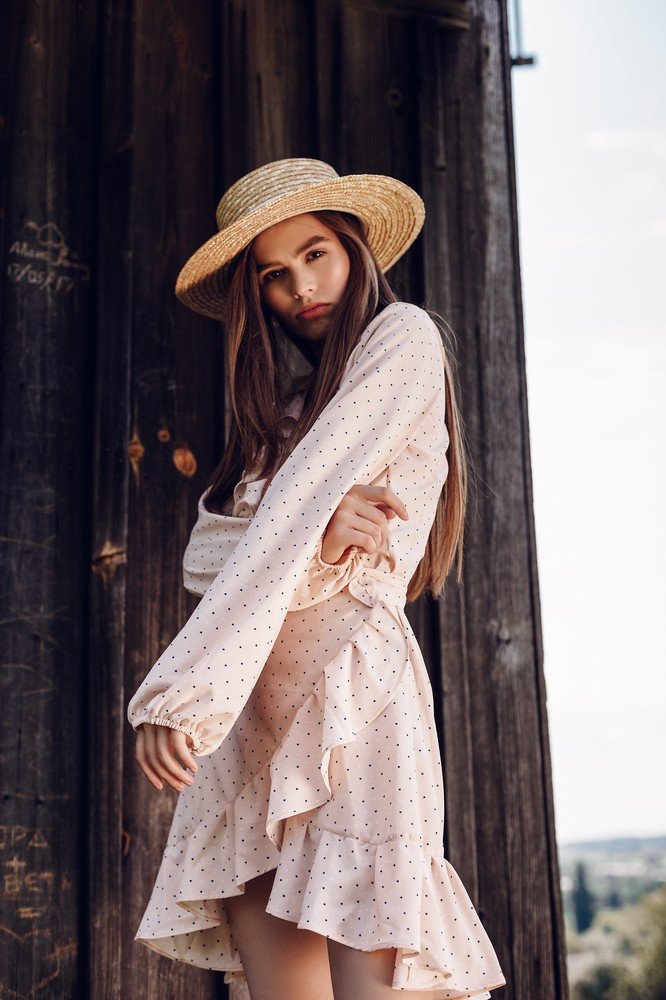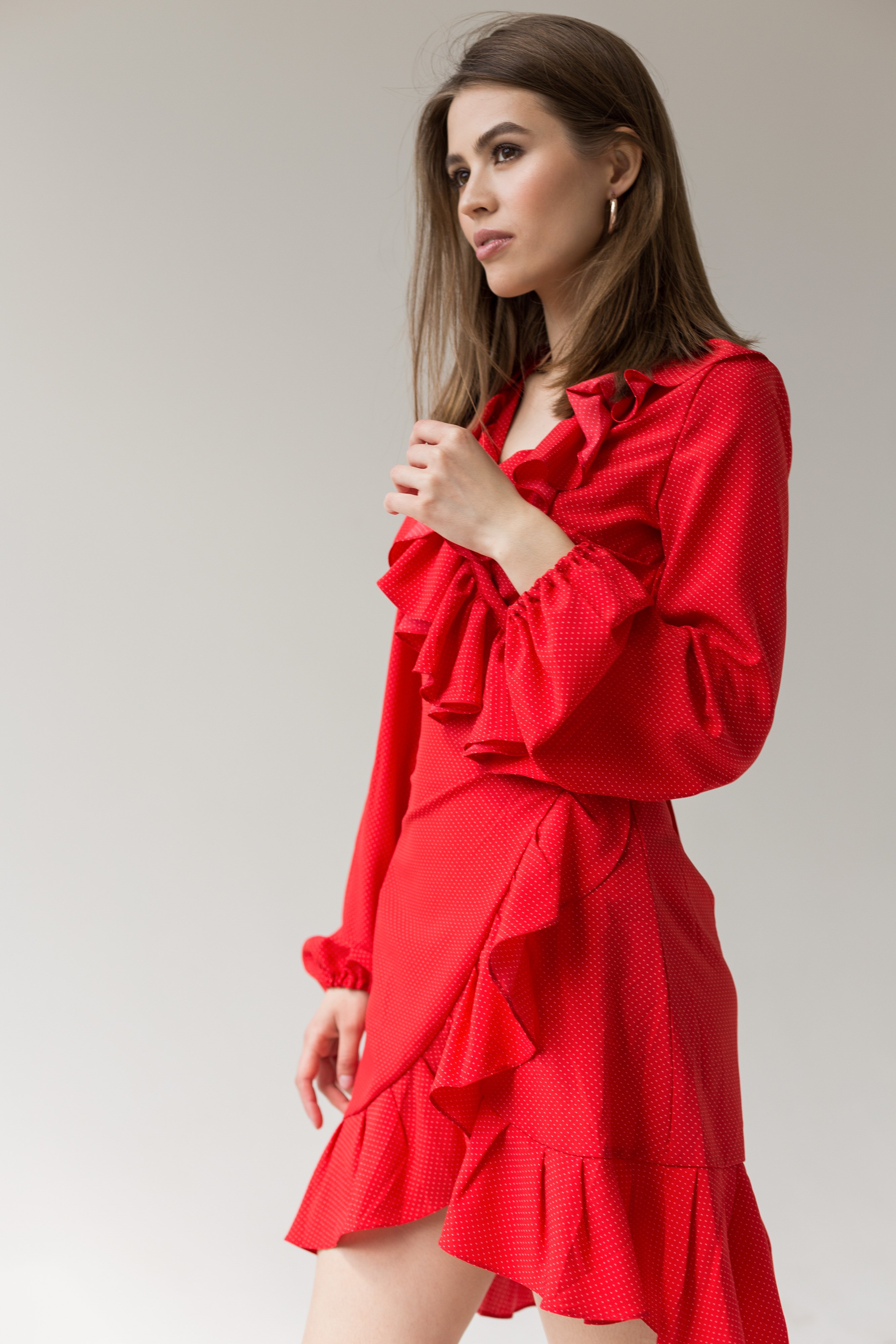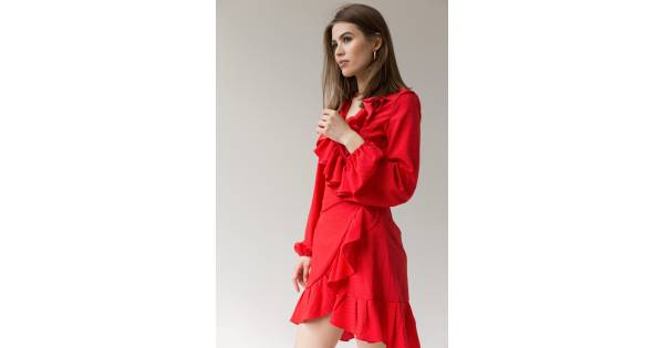 Dress with frills print small peas - red