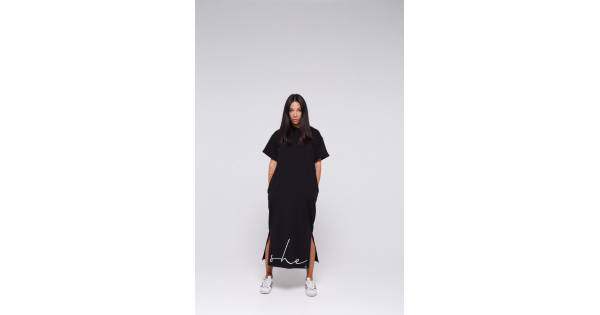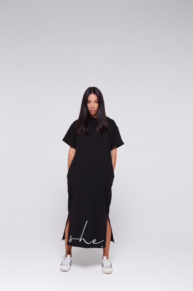 Flounced dress with pea print - black