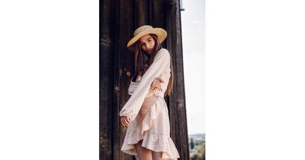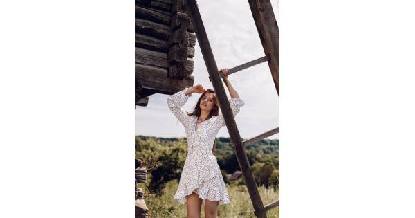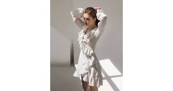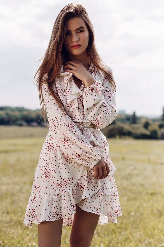 Dress with ruffles and printed red hearts on the smell - white