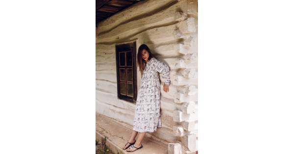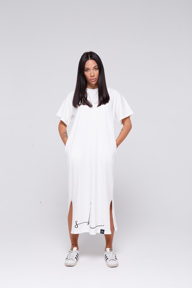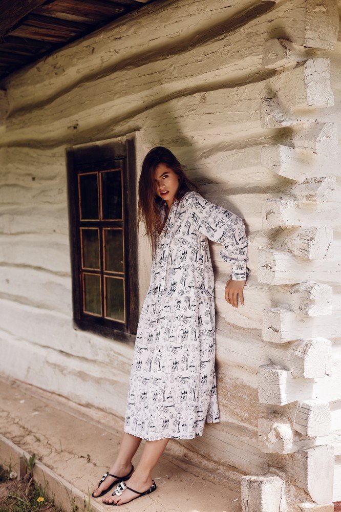 Dress with buttons flowers print - white
