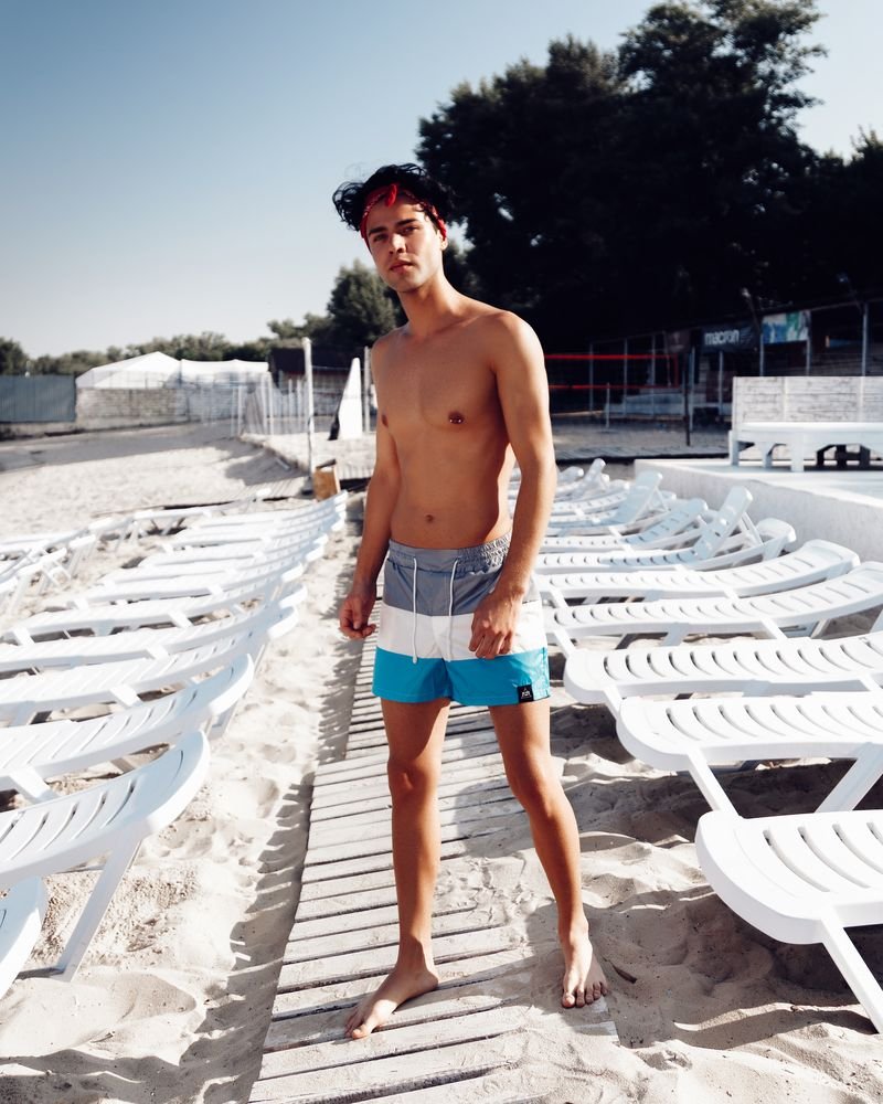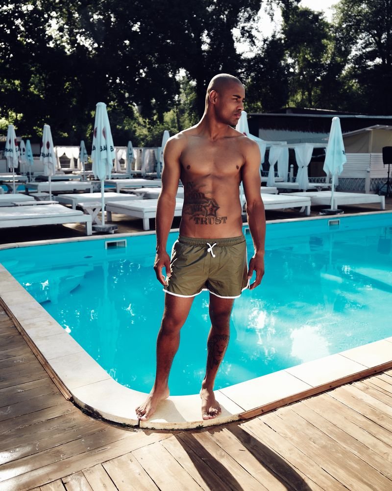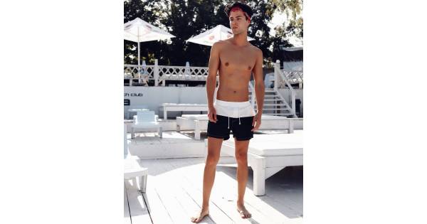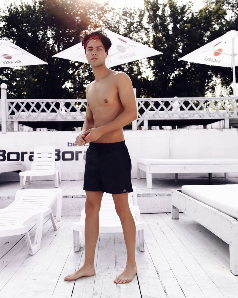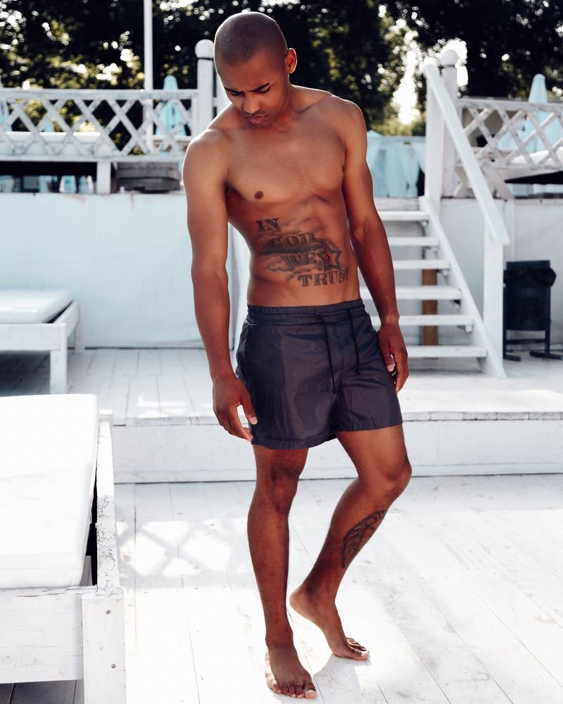 Men's swimming trunks black and white