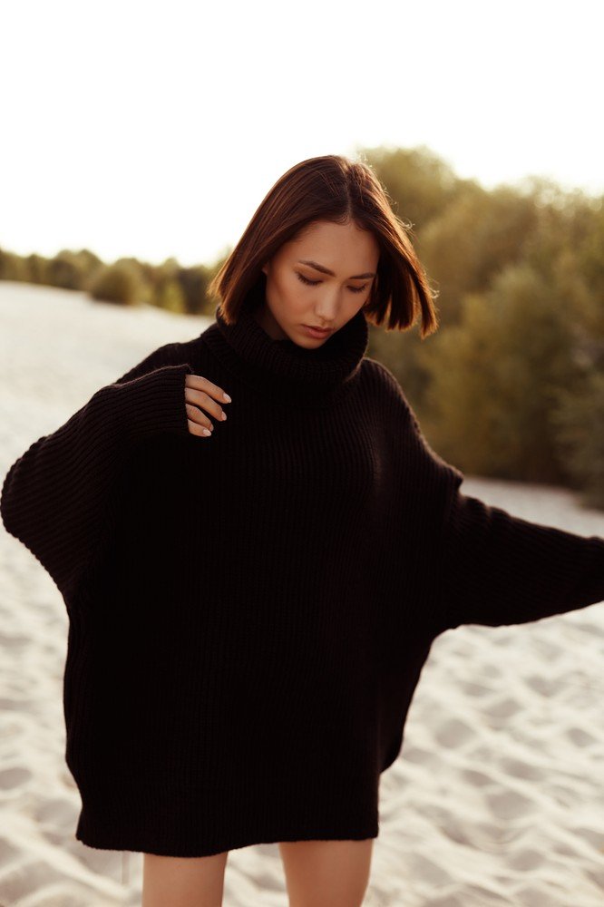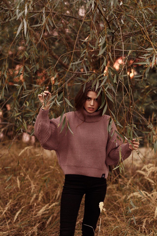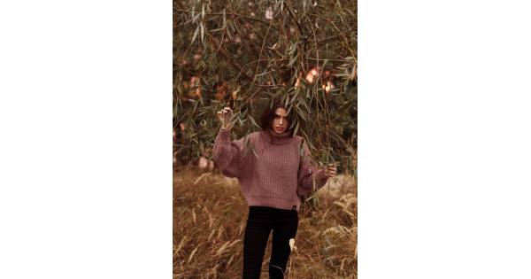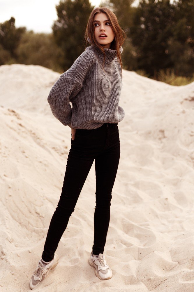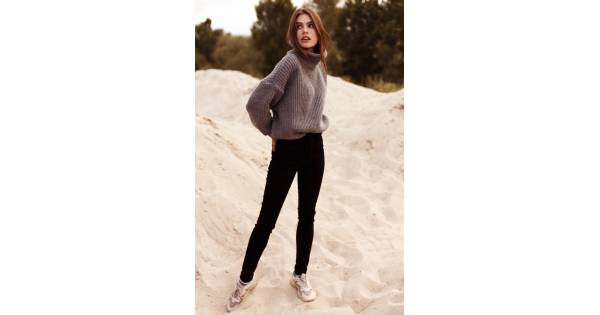 The OVERSIZE CROP sweater women's - charcoal/pink