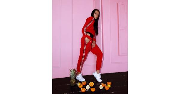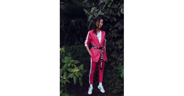 Jacket female OVERSIZE with stripes of Raspberry Knockout crimson