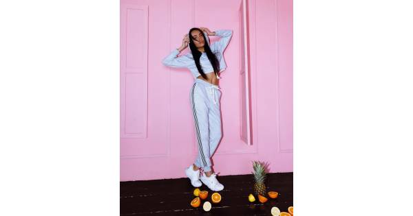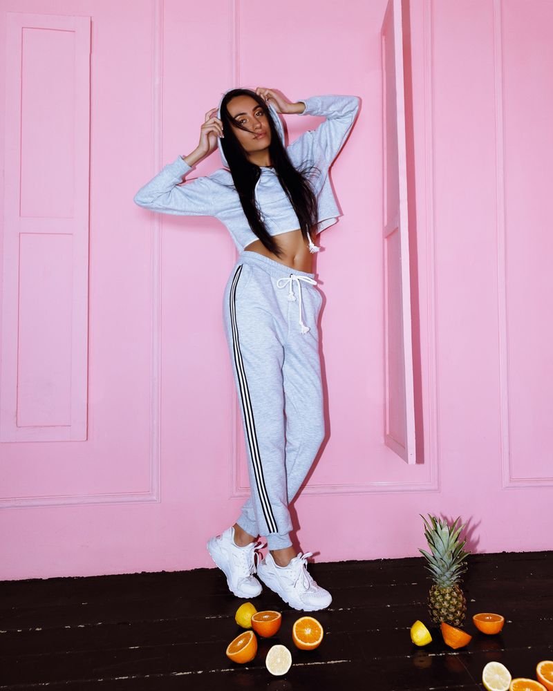 Women's cropped hoodie with gray stripes
