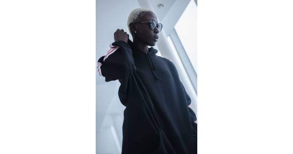 Hoodie feminine on Sport fleece with black stripes