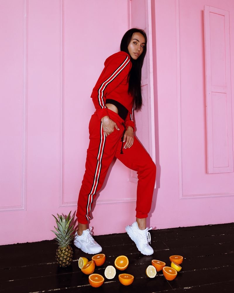 Women's cropped hoodie with stripes red