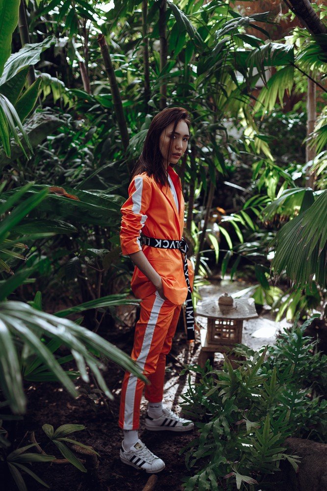 Jacket female OVERSIZE with Papaya Smothue stripes orange