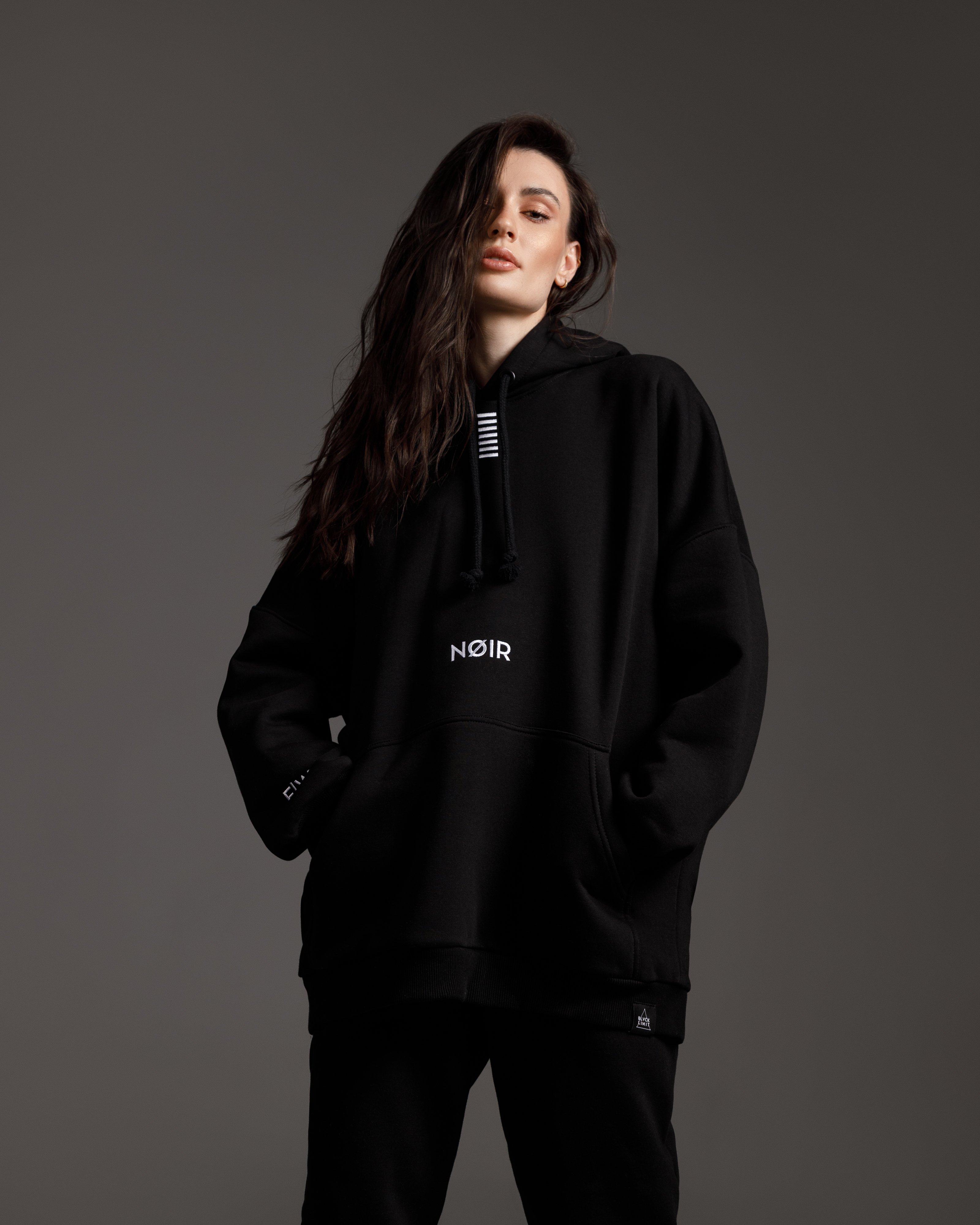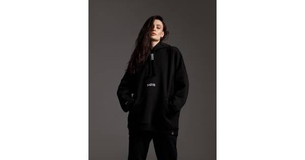 Women's oversize summer black hoodie with script embroidery