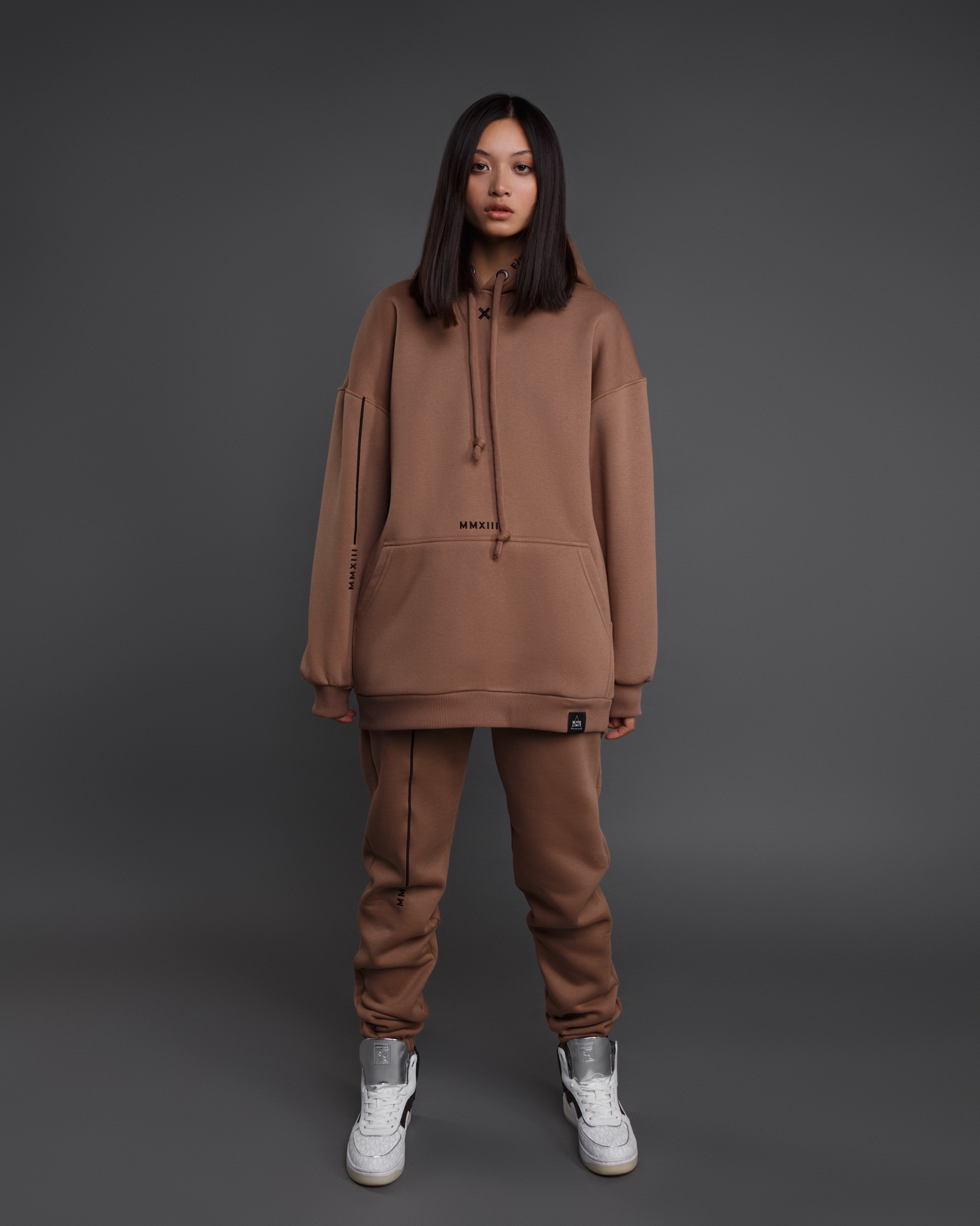 Hoodie for women OVERSIZE with embroidery EUFORIA mocha