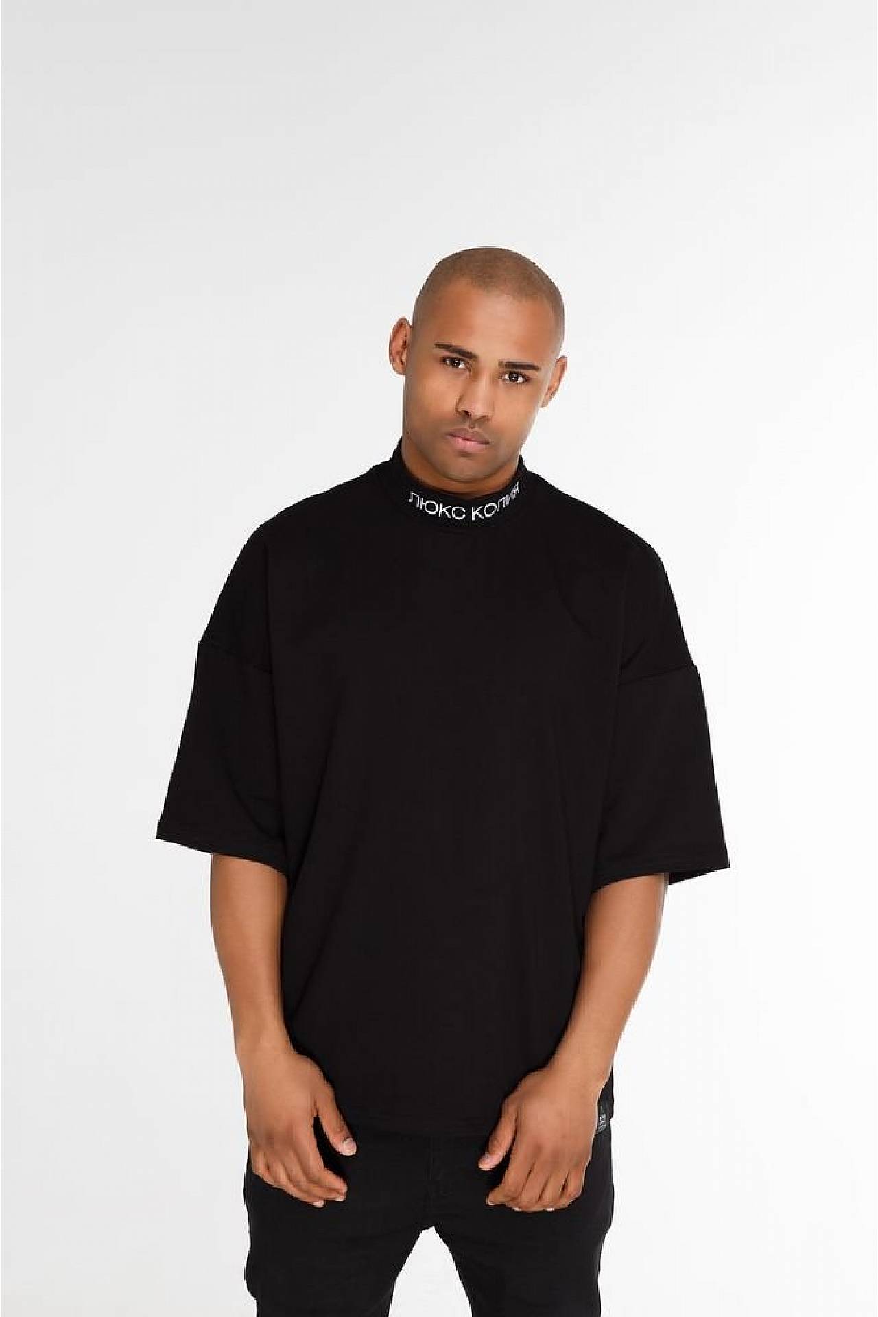 Главной изюминкой футболки является аккуратная вышивка на завышенном воротнике. Она выполнена белыми нитками, и такой контрастный дуэт прекрасно вписывается в образ. Надпись «Люкс Копия» будет подчеркивать ваши взгляды и изысканность вкуса.