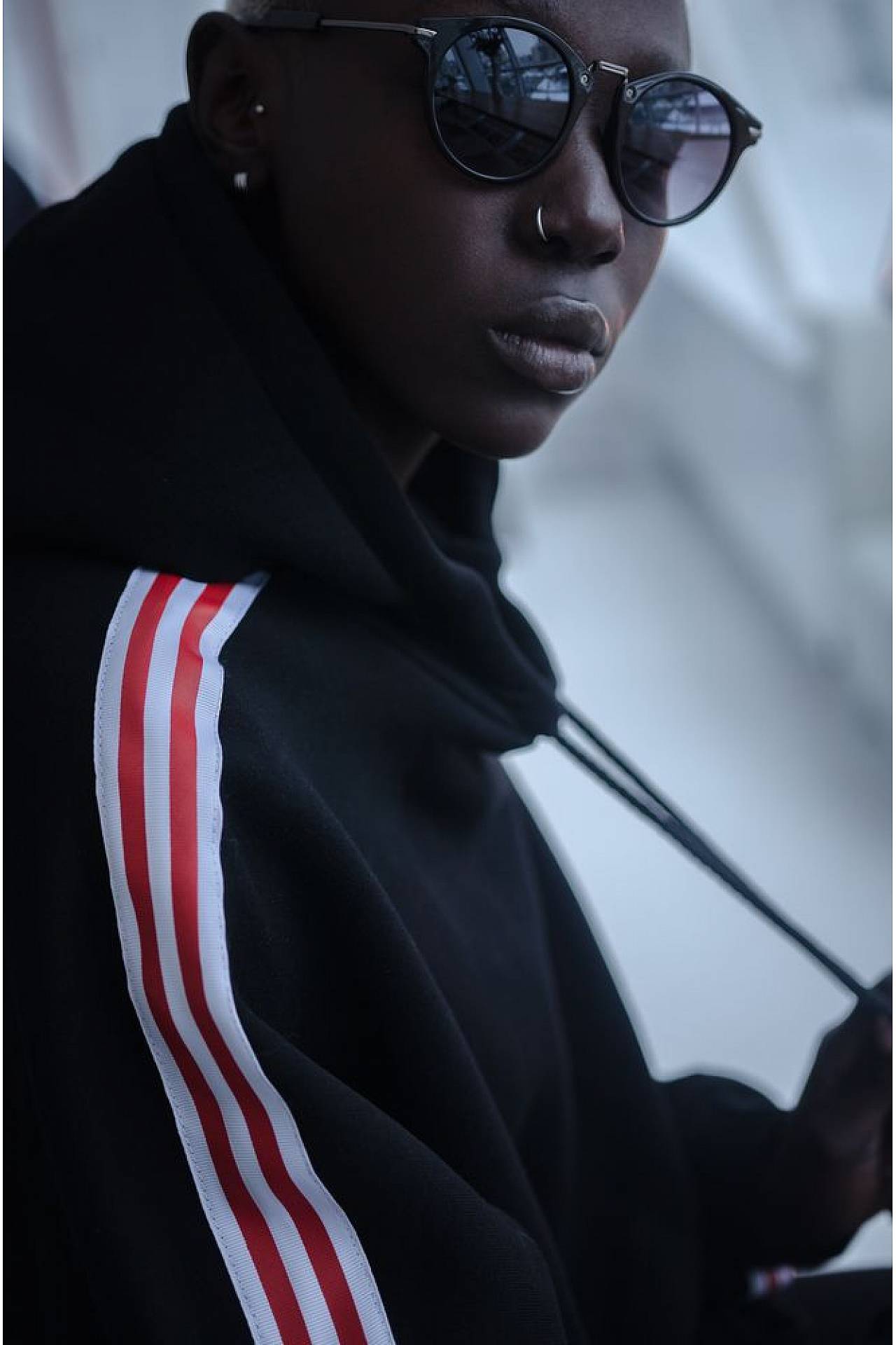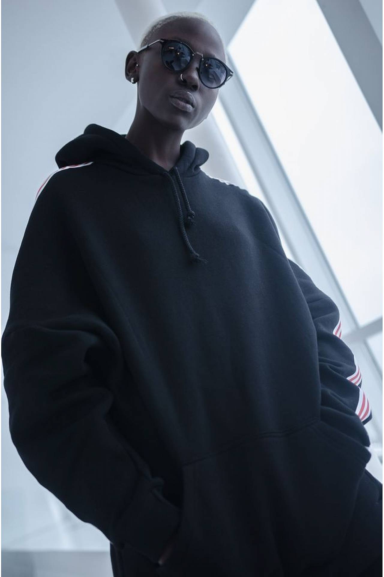 Наконец-то ценители незаурядных решений могут потешить себя подходящими модными новинками. Так, женское худи черного цвета с контрастными лампасами станет олицетворением бунтарского характера и позволит создавать бесчисленные комбинации. Дизайнеры бренда продумали все до мелочей. В такой одежде будет комфортно и удобно и в солнечный день, и в холодный дождливый вечер. Выполняйте повседневные дела с комфортом. Или отправляйтесь на пробежку, не переживая, что чересчур вспотеете или замерзнете.