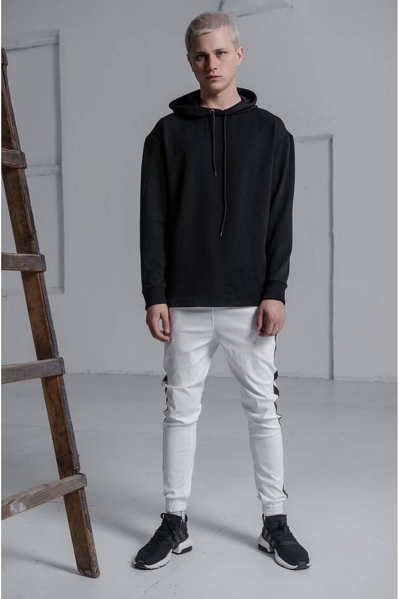 Классический черный цвет открывает безграничные возможности для комбинирования. Белые чиносы, зауженные синие джинсы, ярко-красные спортивные штаны – любой из этих вариантов будет органично сочетаться с худи.