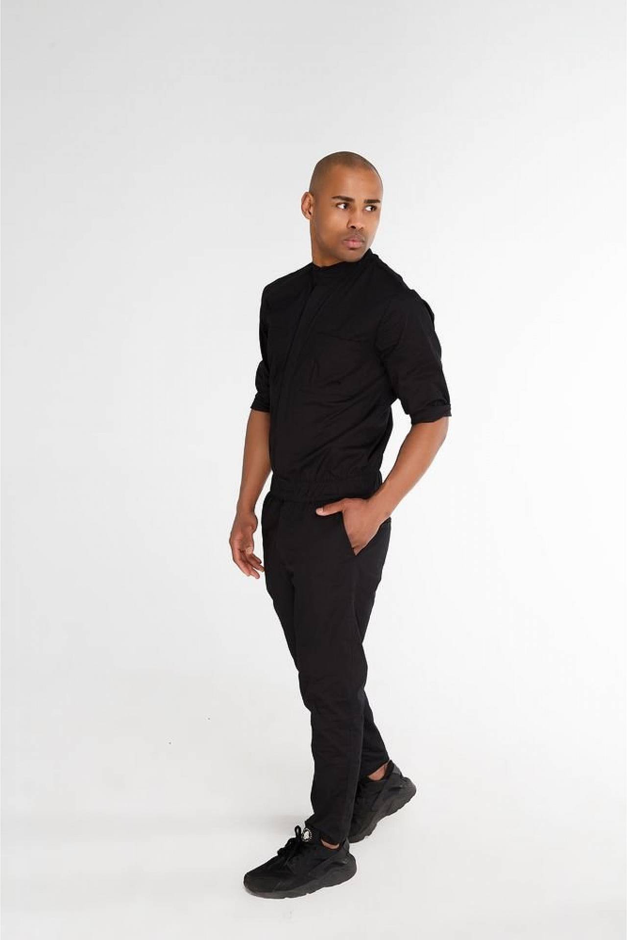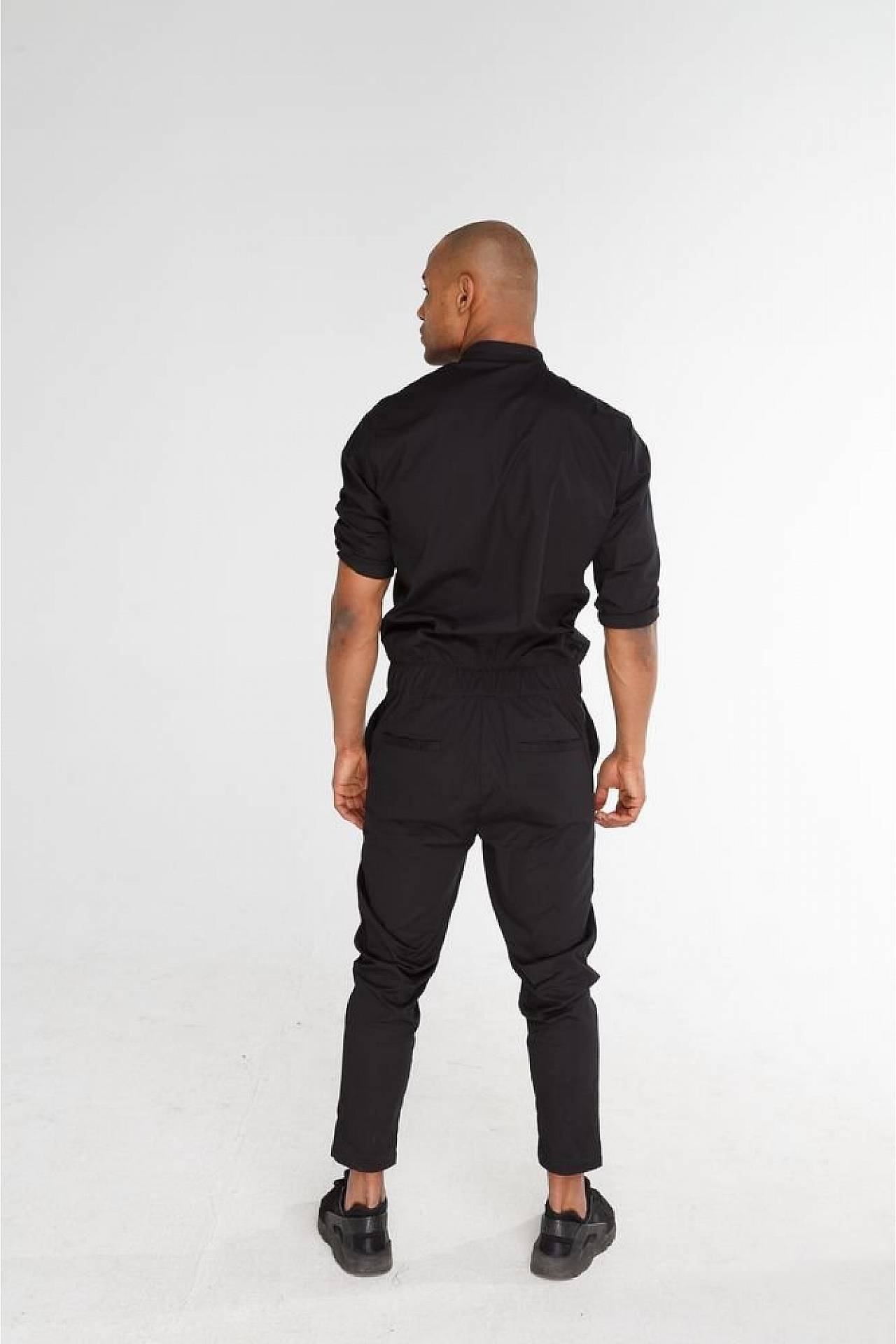 Комбинезон черный без воротника — это оптимальное решение для мужчин, которые ищут легкость и практичность в изделии. Изделие выполнено из хлопка и полиэстера, чтобы обеспечить максимально комфортное передвижение в джунглях мегаполиса и сохранить внешний вид на долгие месяцы. Легкость материалов даст полное ощущение свободы в движениях, вы едва почувствуете вещь на себе.