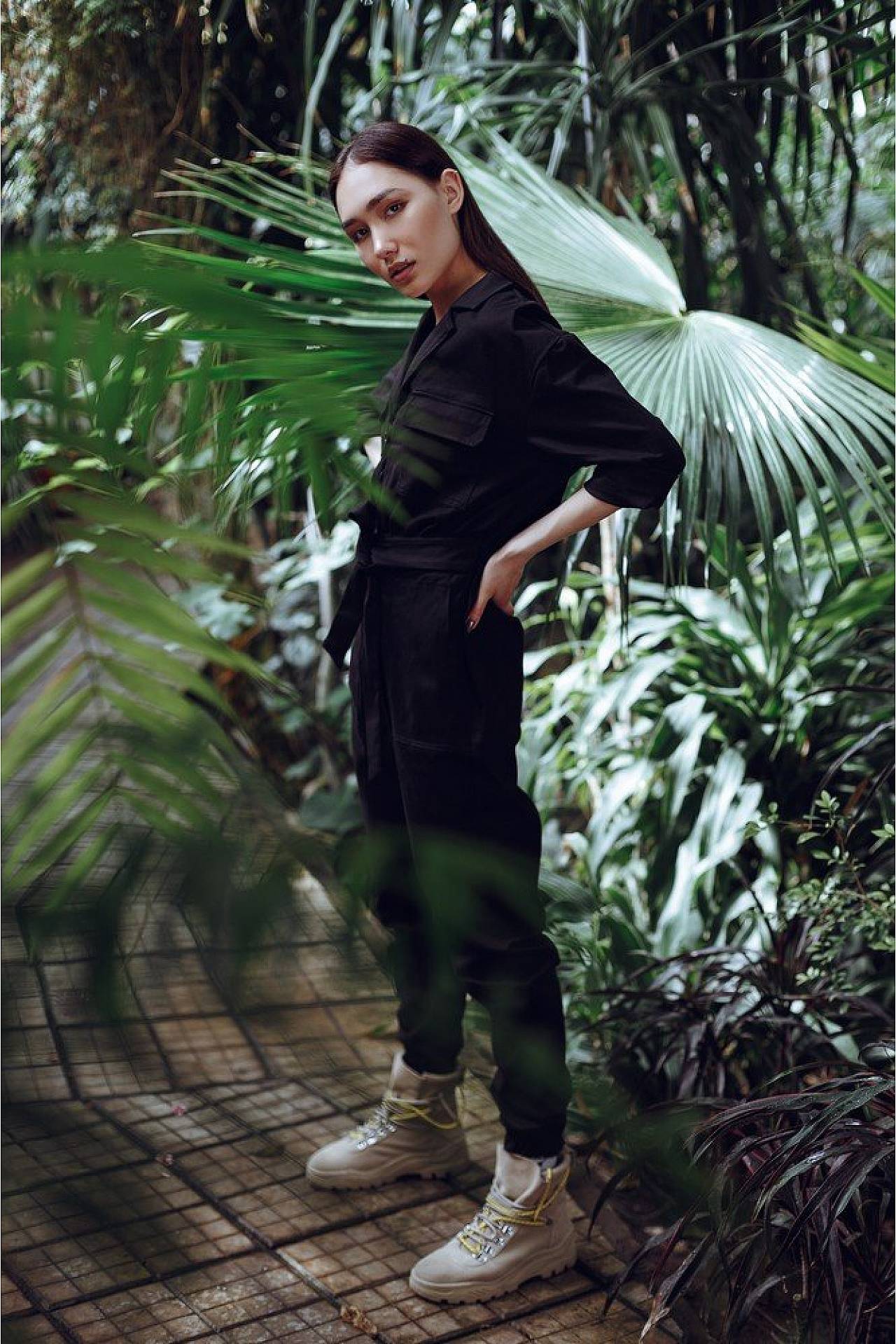 Брендовый комбинезон черного цвета – лучший выбор для спортивных и уверенных в себе красавиц. Сочетать благодаря цвету одежду можно с чем угодно. Специалисты советуют не отходить далеко от направления и подбирать парки, куртки цвета хаки, ветровки и длиннее плащи для холодного времени года. Если речь идёт о летнем образе, дополнить лук помогут аксессуары. Это могут быть шарфик, массивный кулон, яркие серьги, модные очки.