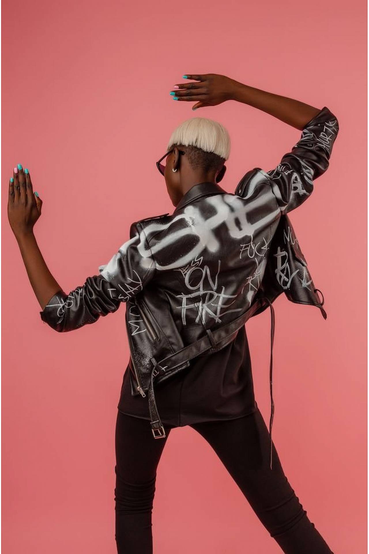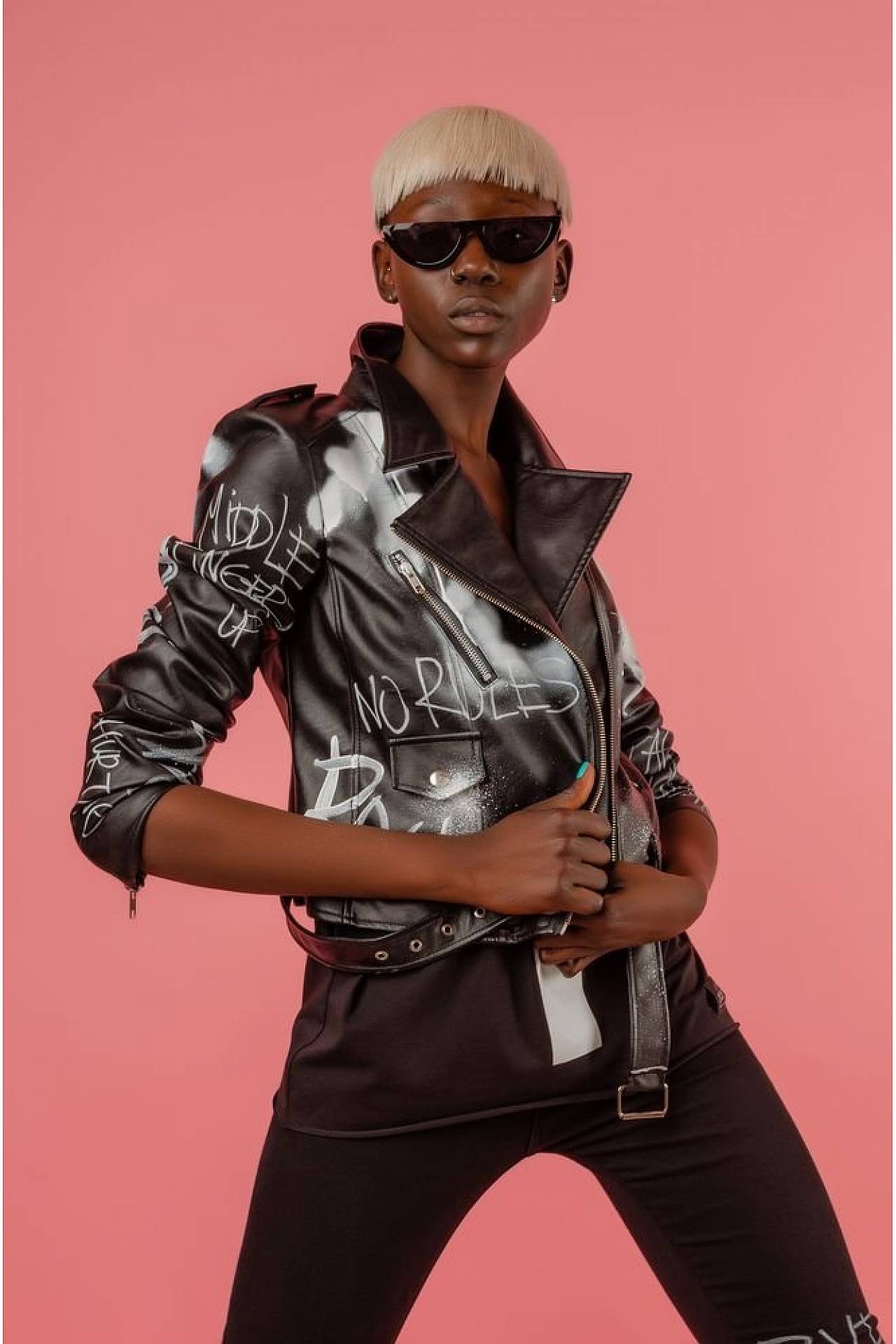Модель смотрится просто изумительно. Дизайнеры Black Limit использовали ряд элементов, делающих куртку универсальной, комфортной и практичной. Особенностью кроя является зауженная талия, широкие плечи и диагональная молния. Дополняет образ шикарный принт hand-made. Эксклюзивный наряд станет изюминкой образа подчеркнет вашу уверенность себе, выражая некий протест против устоявшихся канонов красоты.