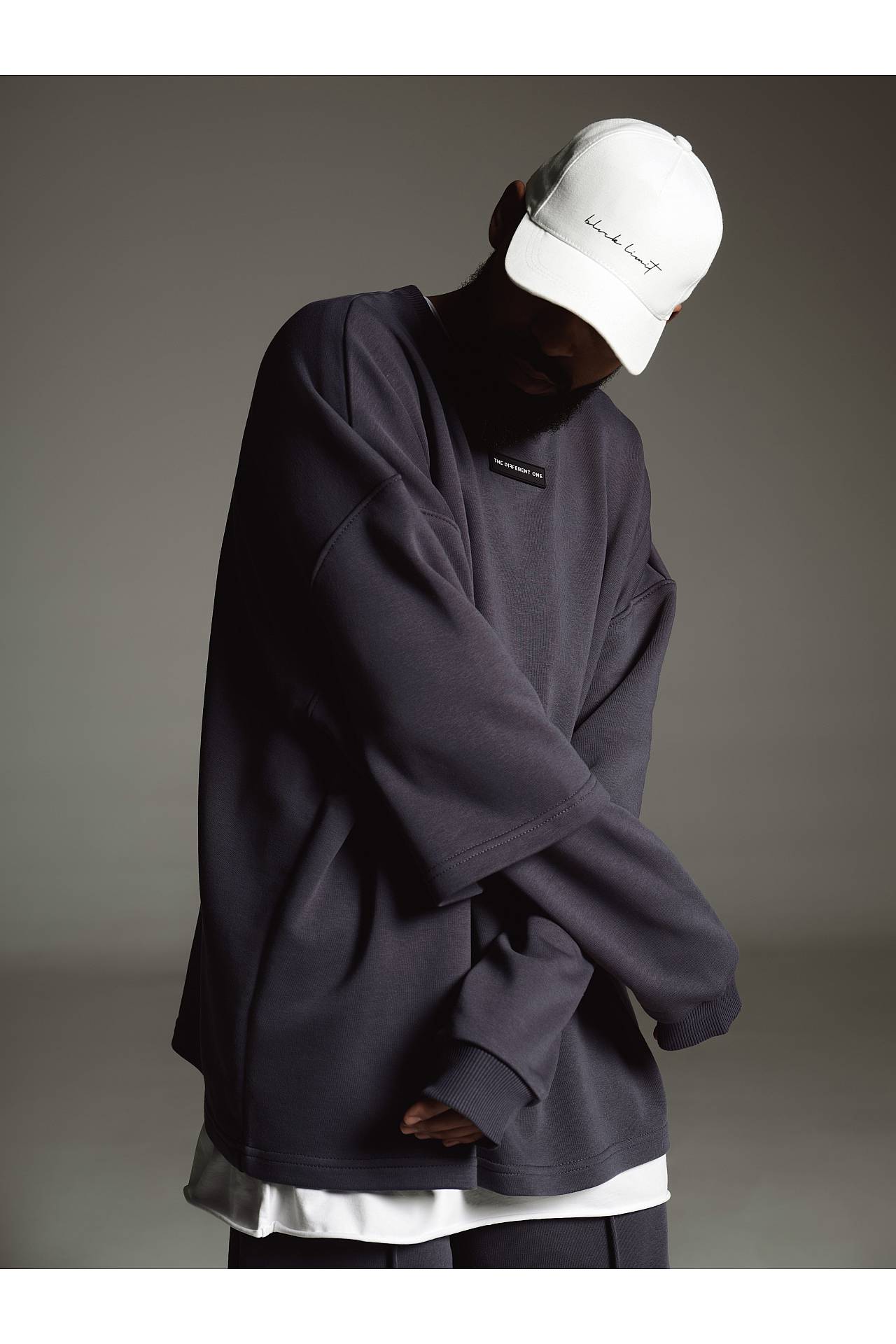 Лонг футболка имеет свободный крой с вшитыми длинными рукавами от плечевого шва, что создает эффект многослойности и футболки, надетой поверх длинного рукава.