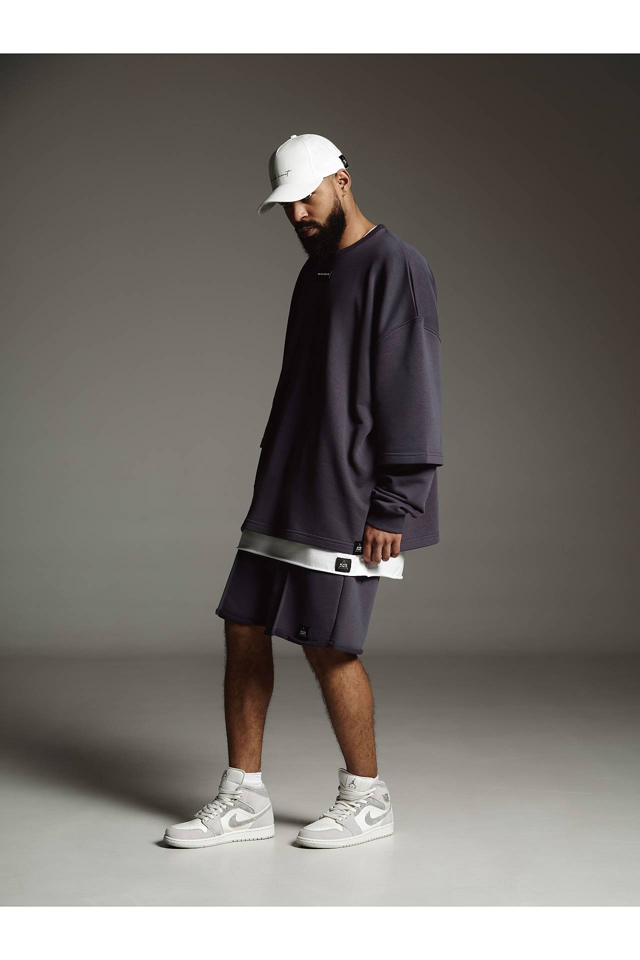 Для полноты образа мы дополняем лонг футболку брюками или шортами из комплекта Storm и белой футболкой для контраста.