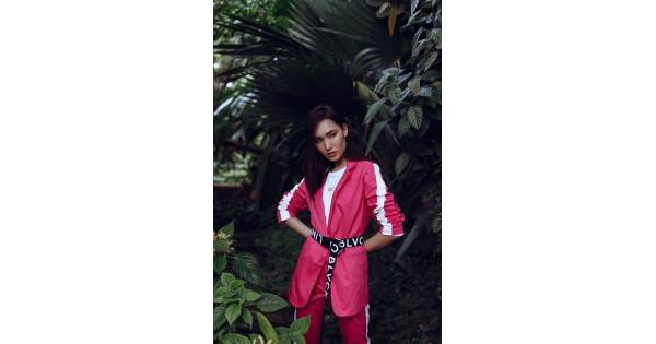 Пиджак женский OVERSIZE с лампасами Raspberry Knockout малиновый