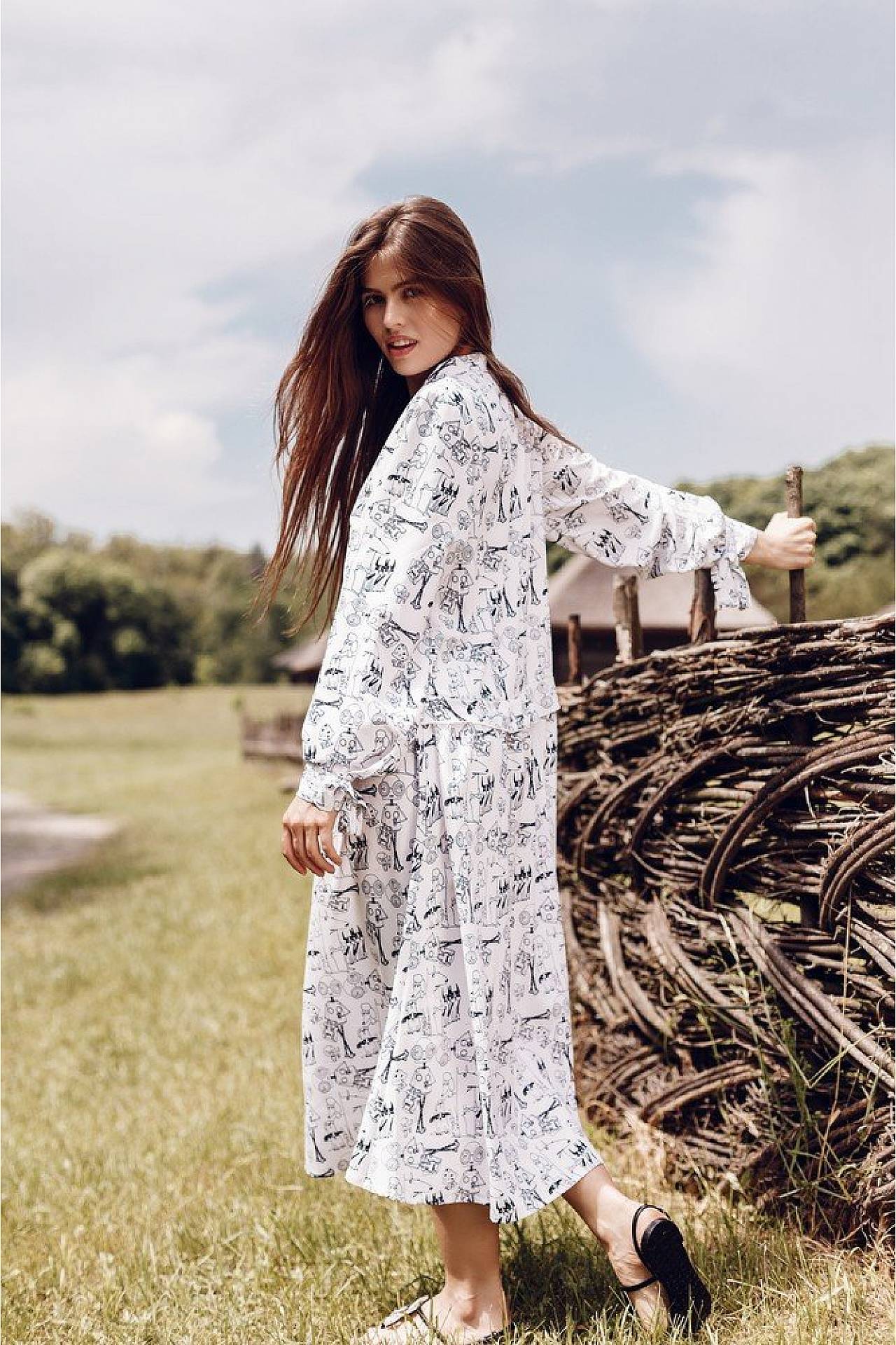 | Замеры | ONE SIZE: Обхват груди - 88 см. Обхват талии - 67,4 см. Обхват бедер - 94 см. Длина изделия - 117 см. Длина рукава - 63 см. |