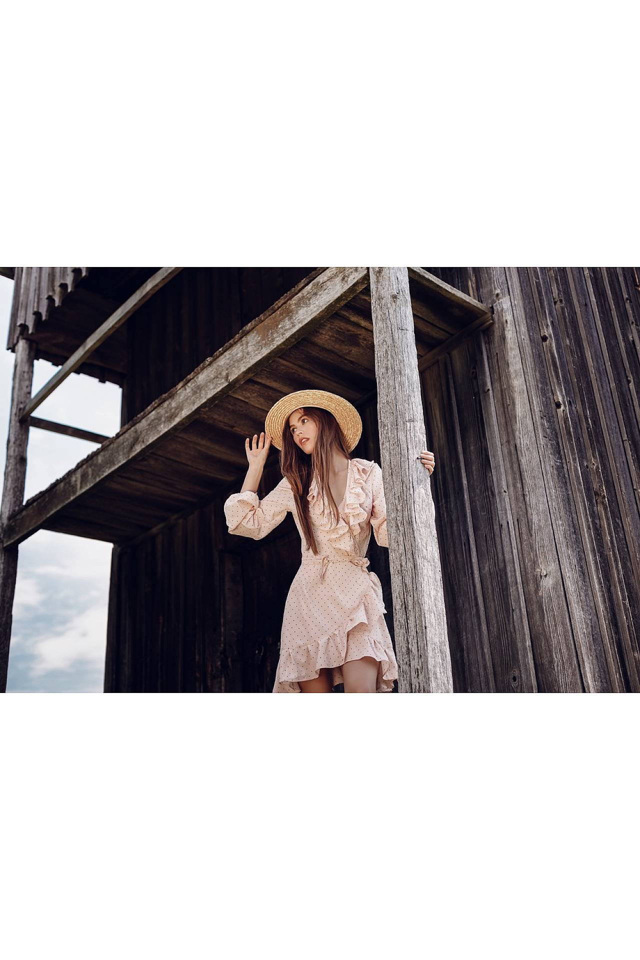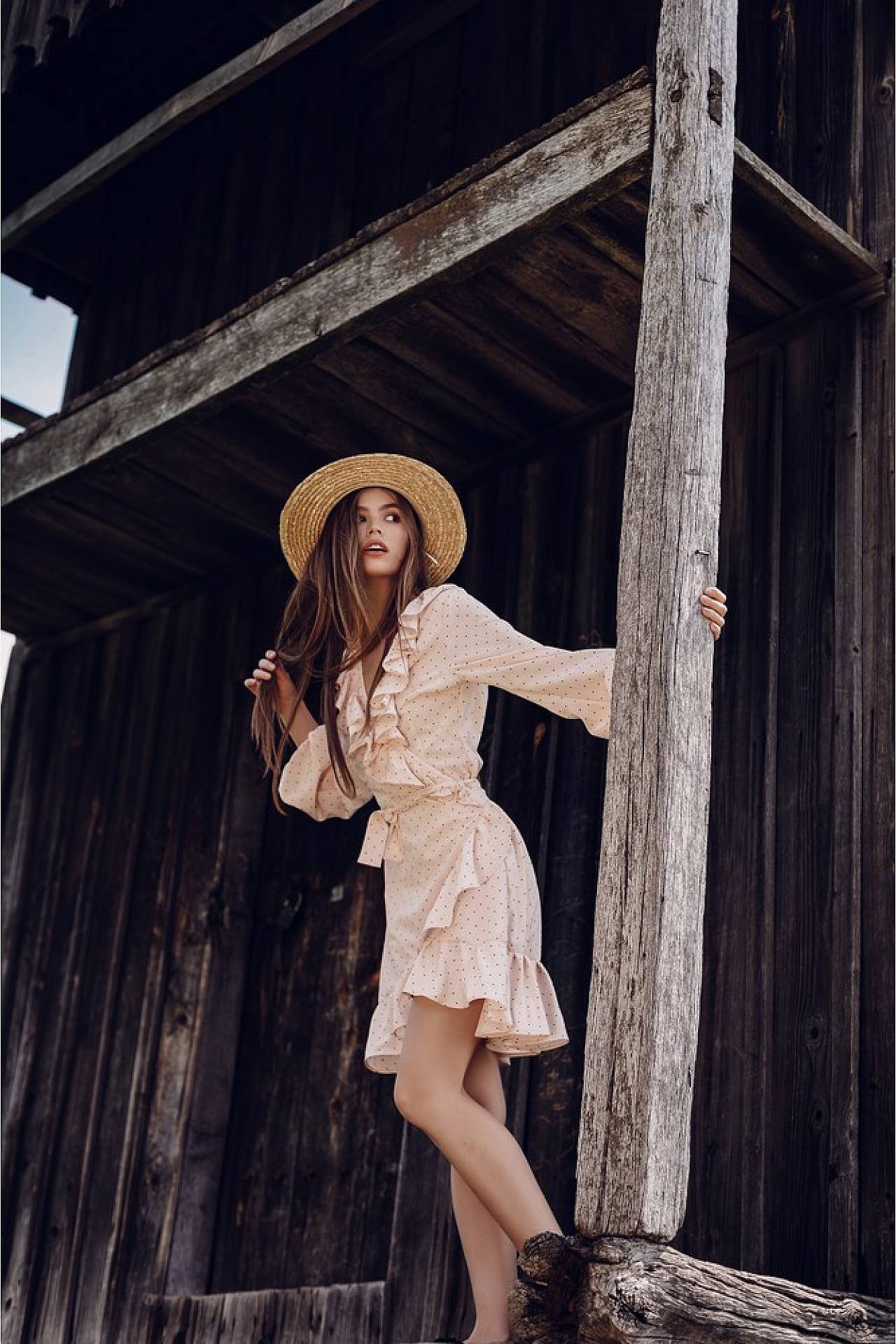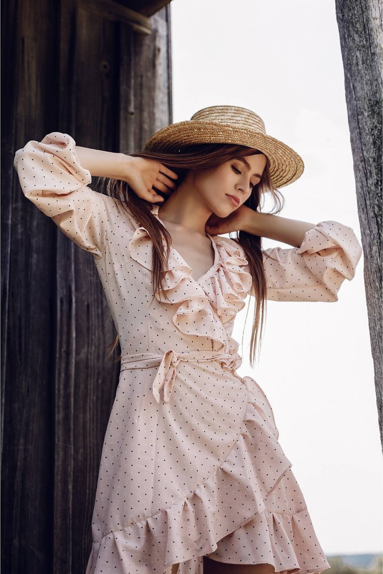 Ткань модели износоустойчива и практична. Она прекрасно поддается чистке и прослужит далеко не один сезон. Побалуйте себя возможностью иметь готовый романтичный лук на все случаи жизни с помощью покупки розового платья с запахом и принтом.
