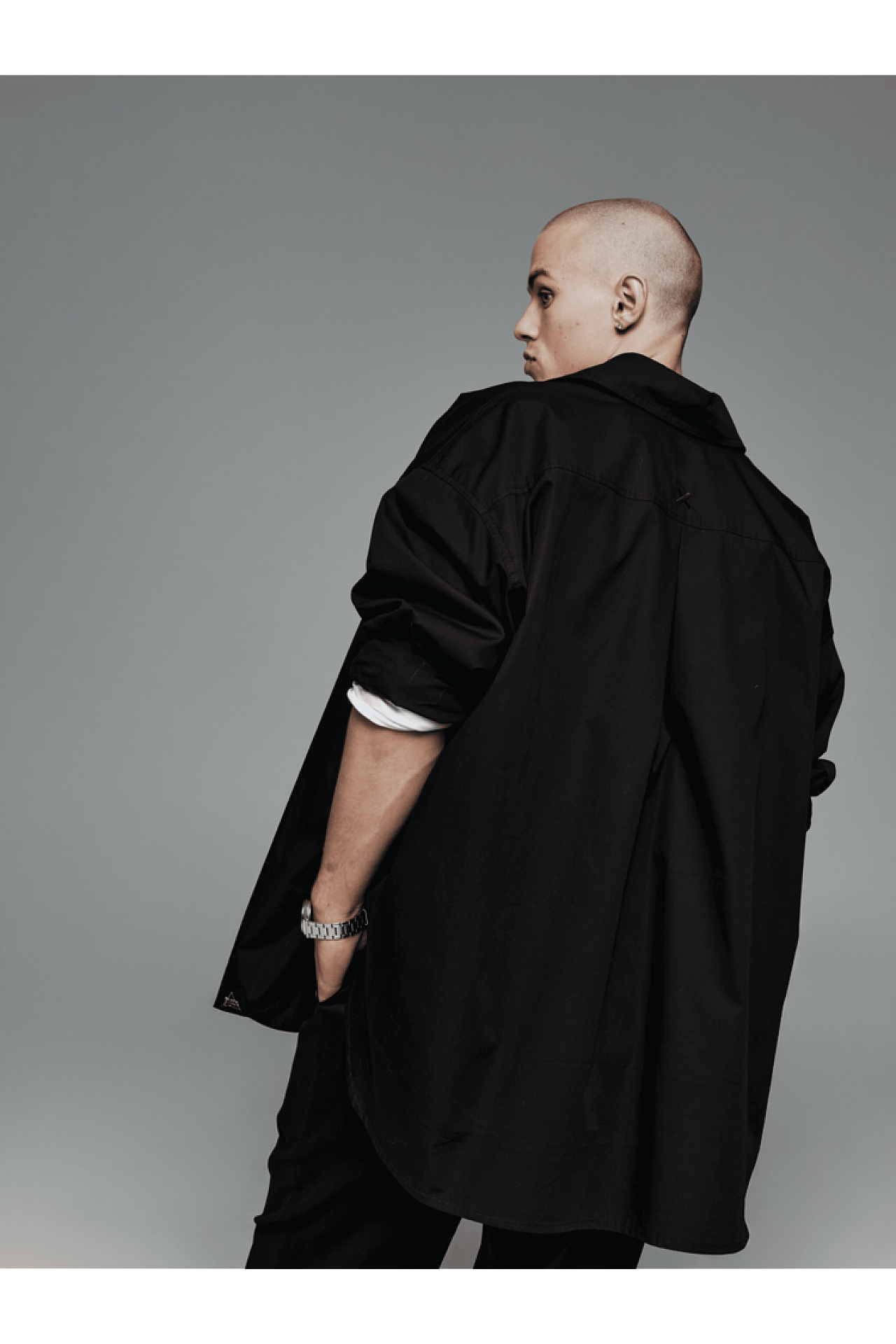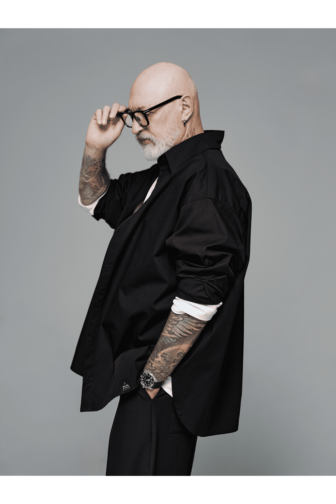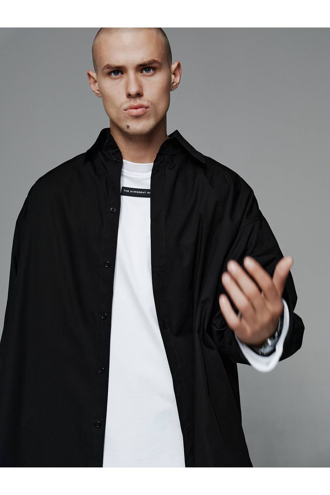 Для законченного лука рубашку дополняем черными джогеррами из стрет-коттона, или брюками и белым лонгсливом из коллекции Different. Все эти позиции вы можете найти в рекомендованных товарах и заказать целый лук, так как они хорошо комбинируются между собой.