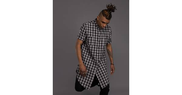 Рубашка удлиненная в серую клетку с коротким рукавом
