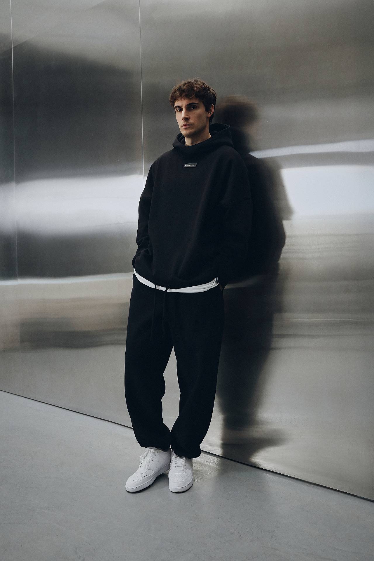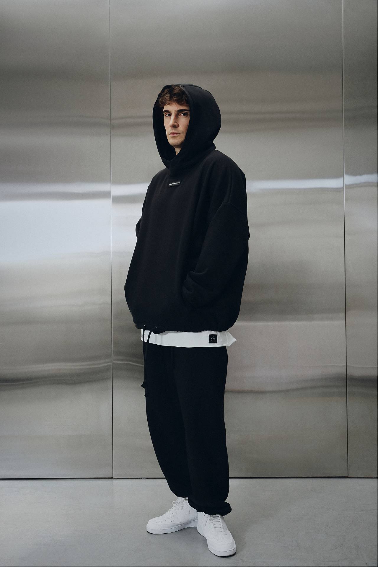 Сет черного цвета из коллекции 4 METALS состоит оверсайз худи и джогеров прямого кроя.