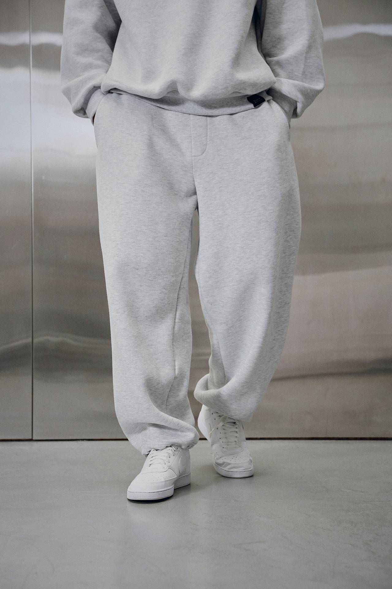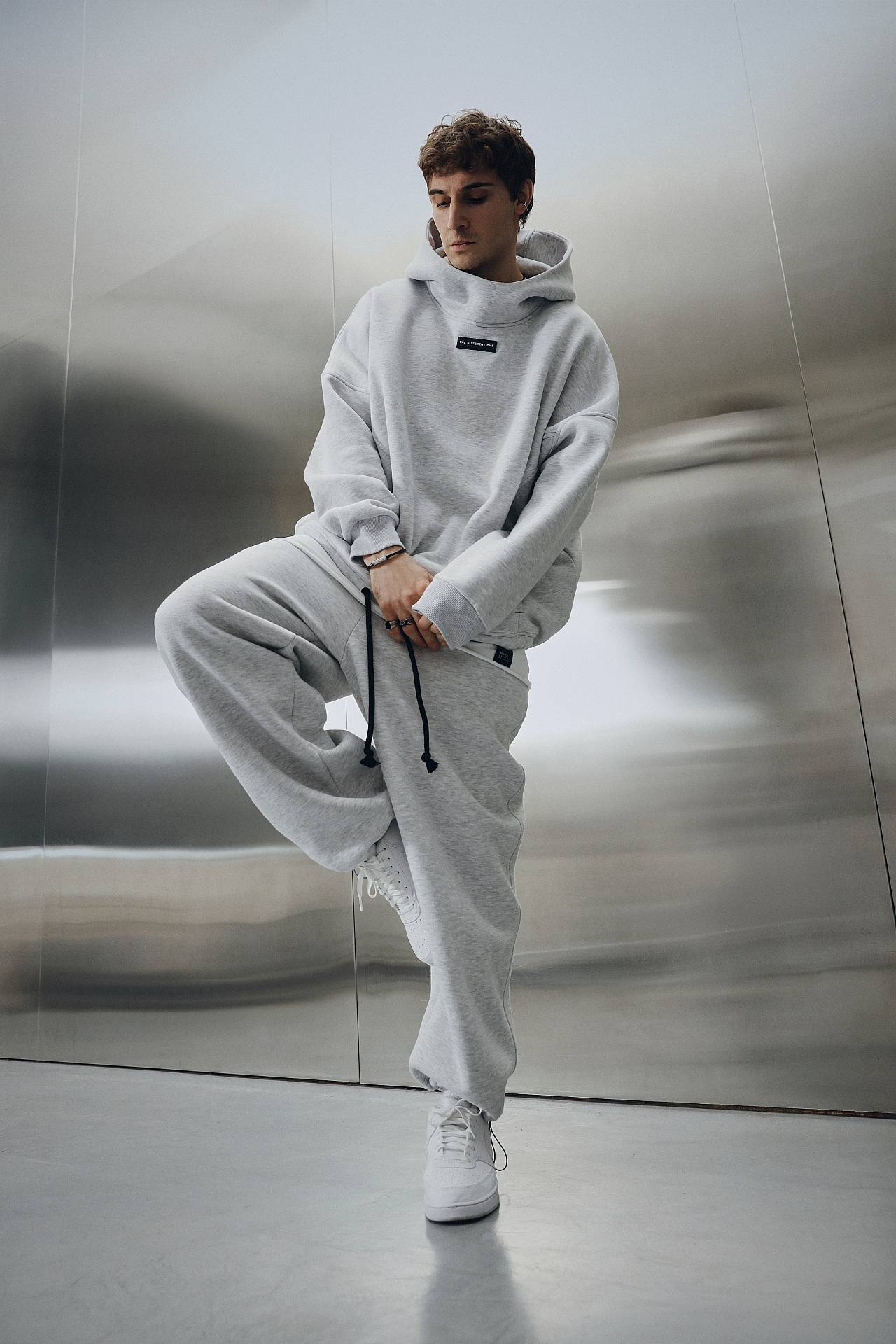Сет цвета серый меланж из коллекции 4 METALS состоит оверсайз худи и джогеров прямого кроя.