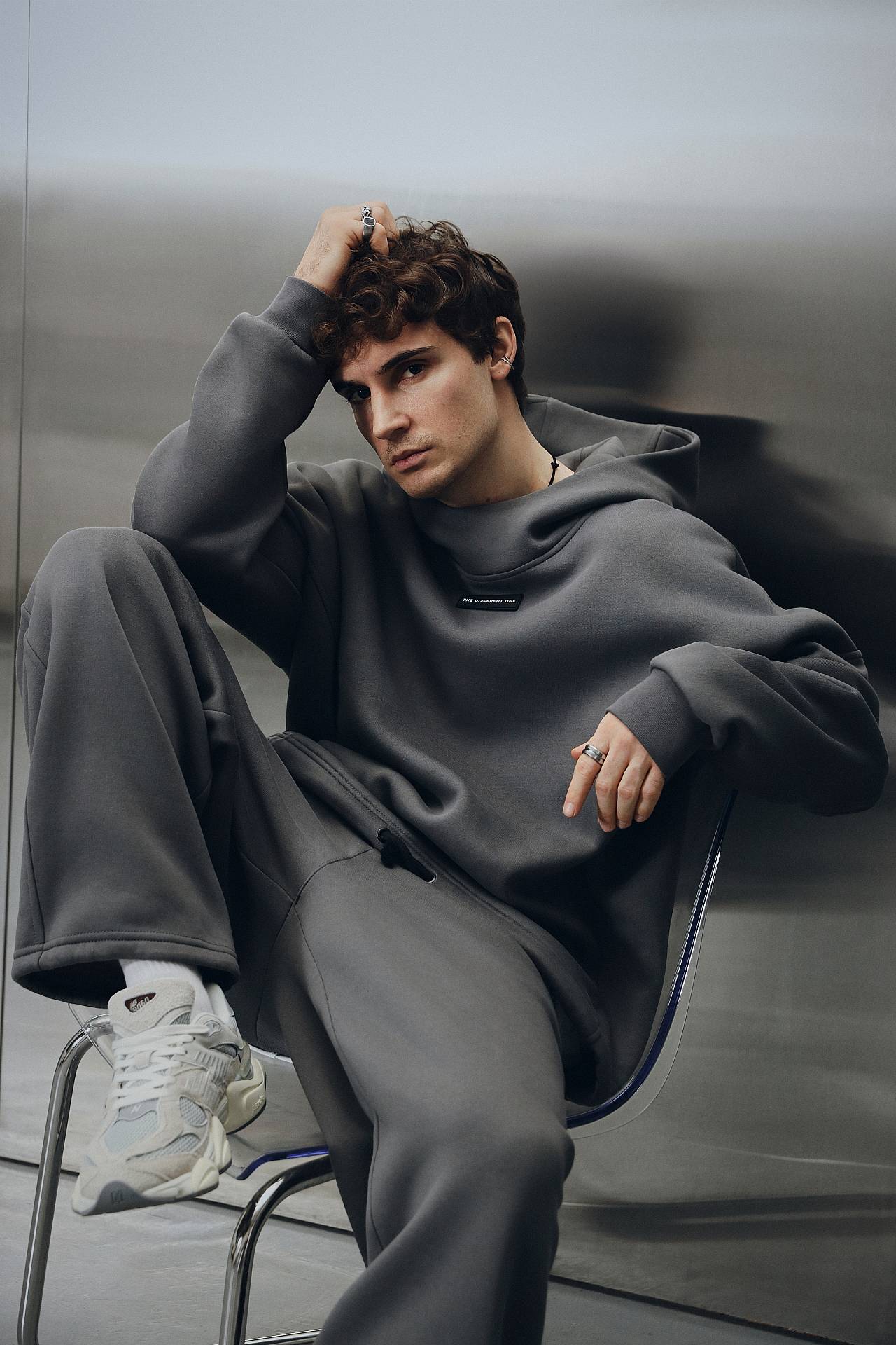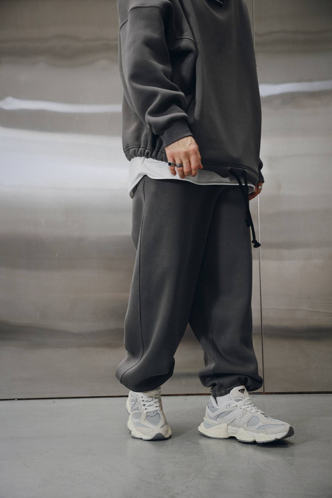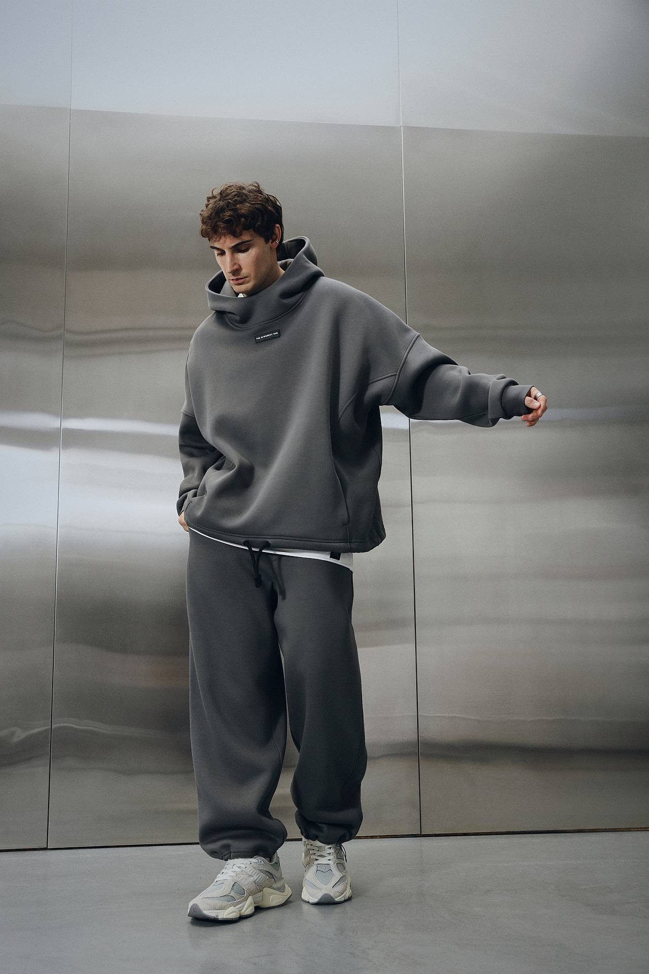 Сет темно-серого цвета из коллекции 4 METALS состоит оверсайз худи и джогеров прямого кроя.