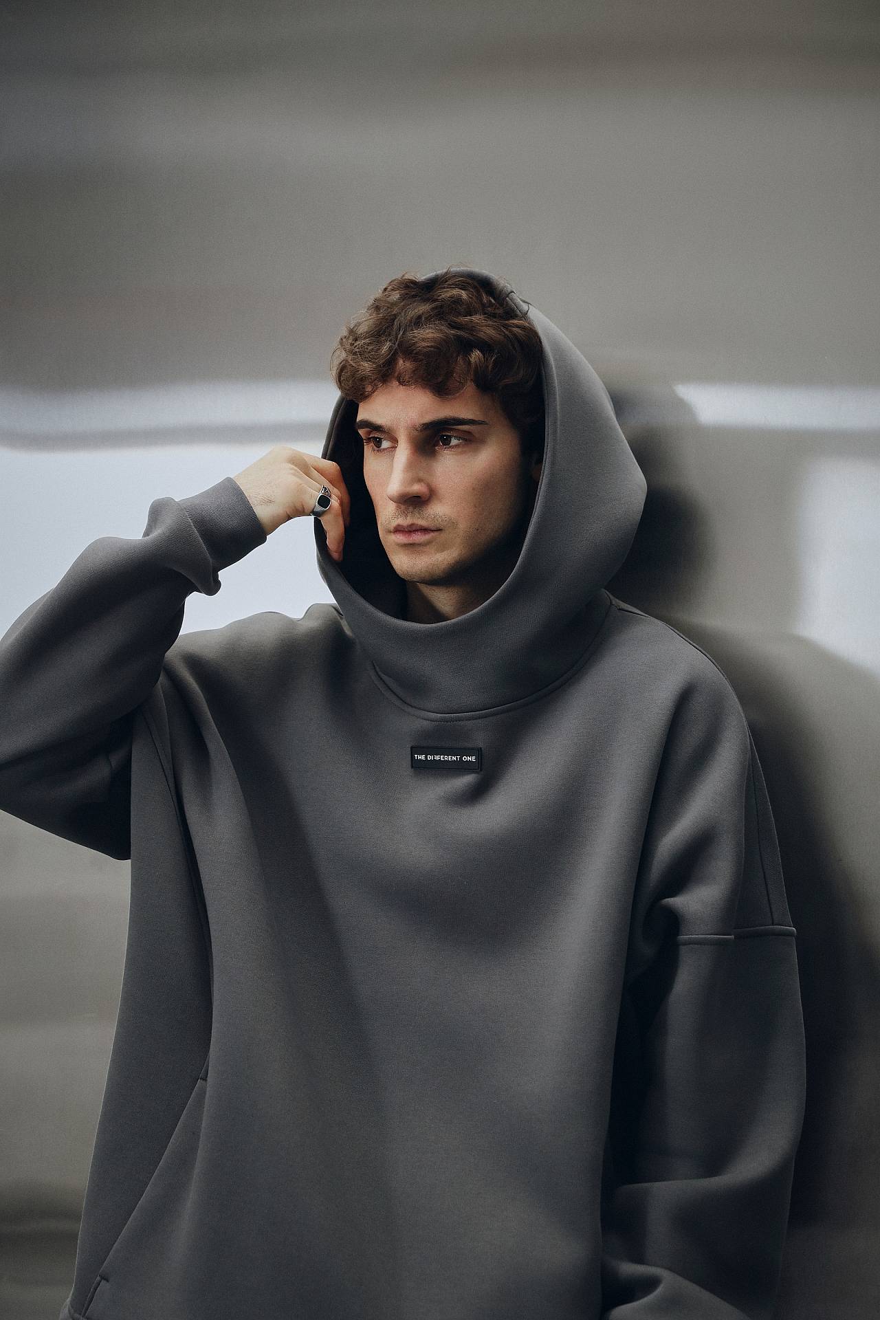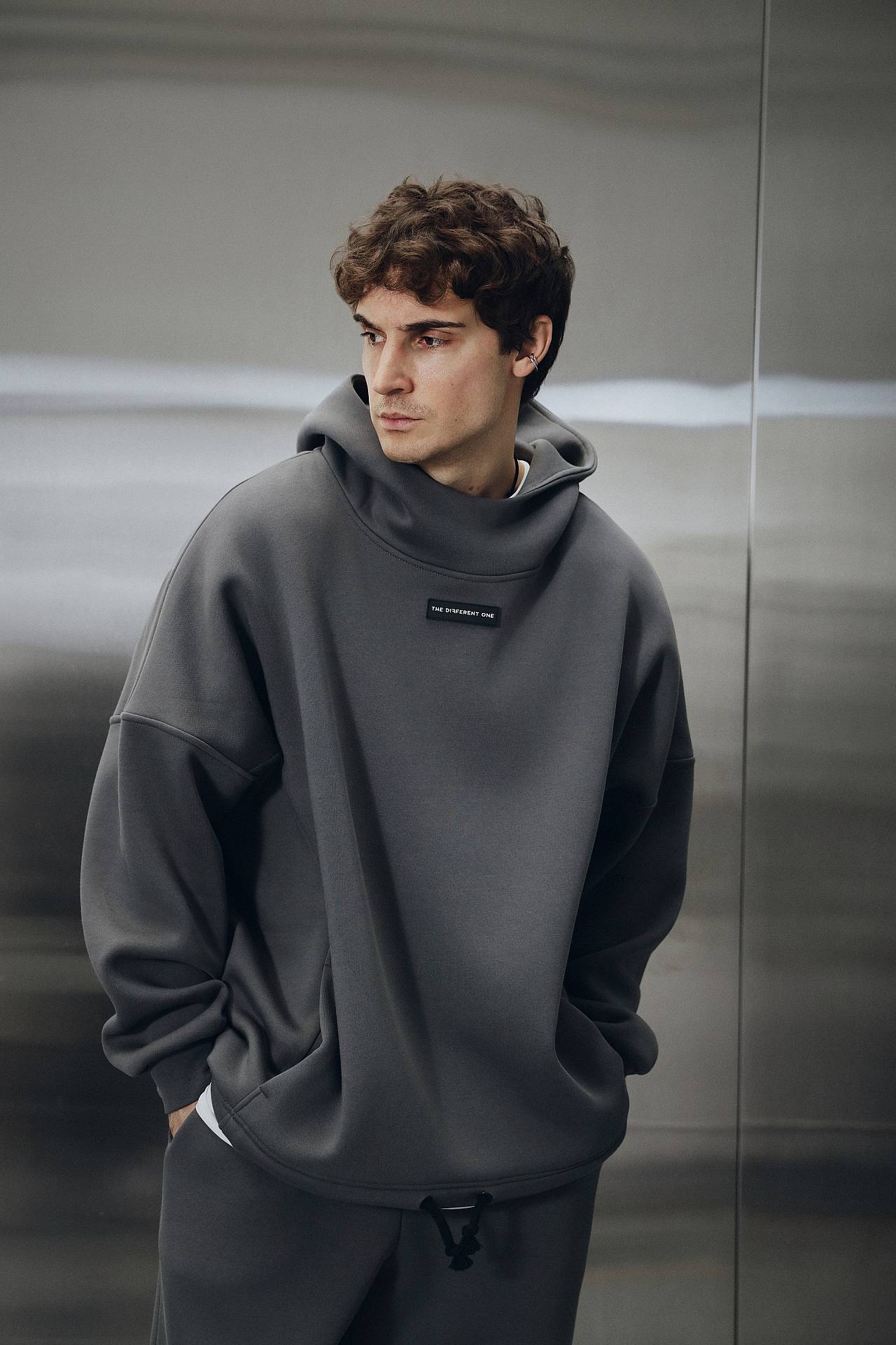 [HIGH NECK HOODIE ] Худи удлиненный оверсайз кроя, с цельной высокой горловиной, которая переходит в капюшон выполнен из двойного слоя теплой ткани, имеет внутренний карман спереди и шнурок-затяжку снизу, для регулировки объема и длины изделия под ваши параметры и предпочтения. Также имеет брендованную силиконовую бирку "DIFFERENT ONE" спереди под горловиной.