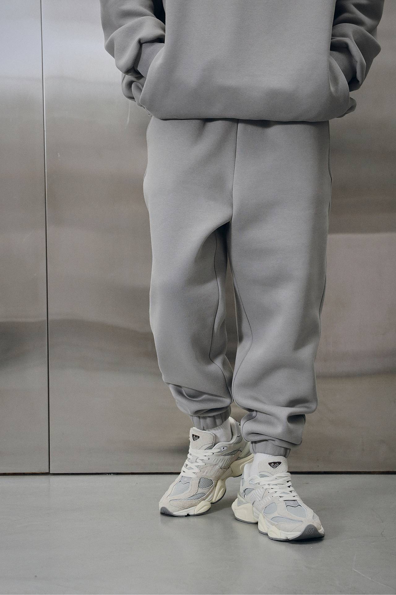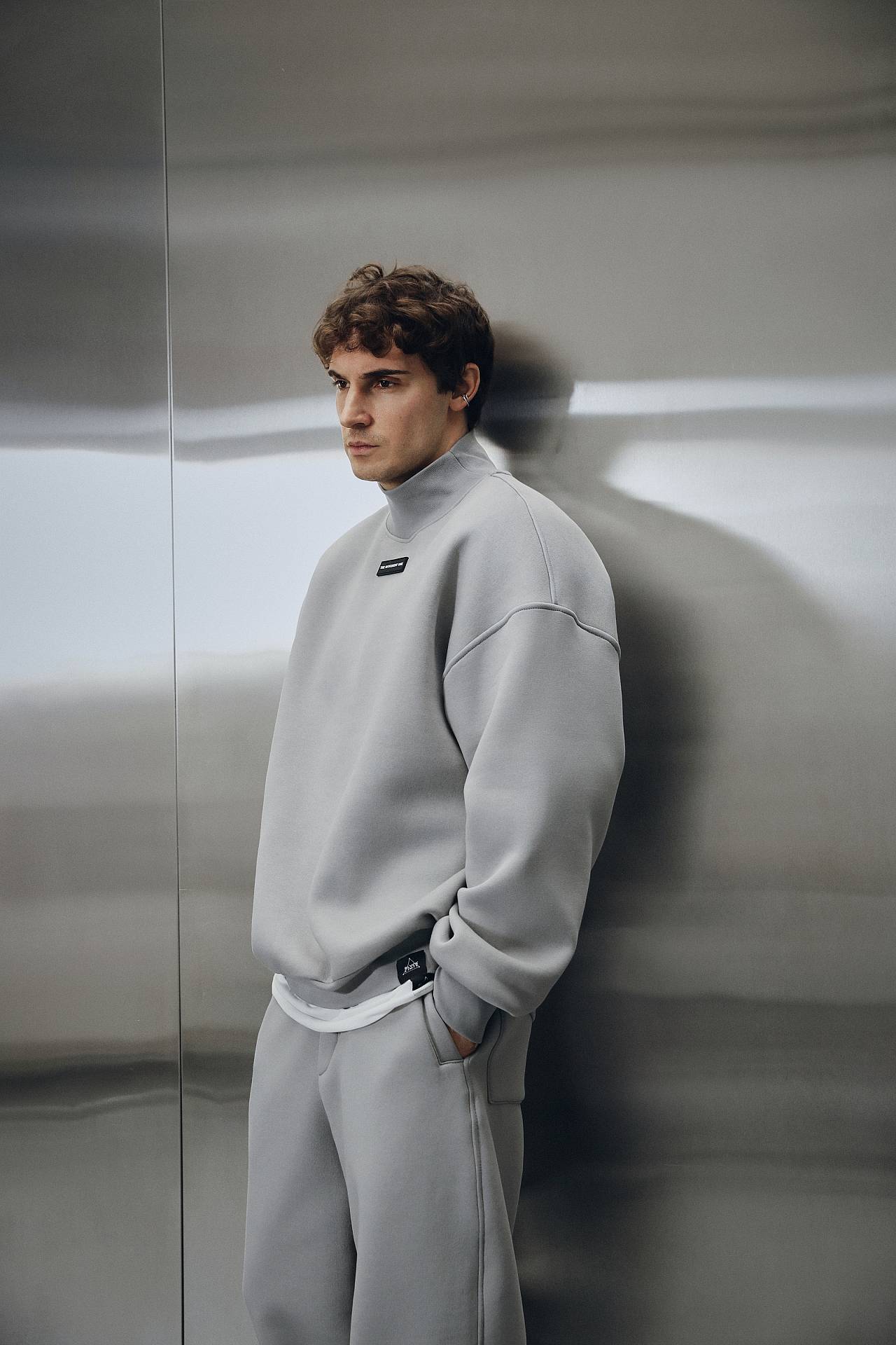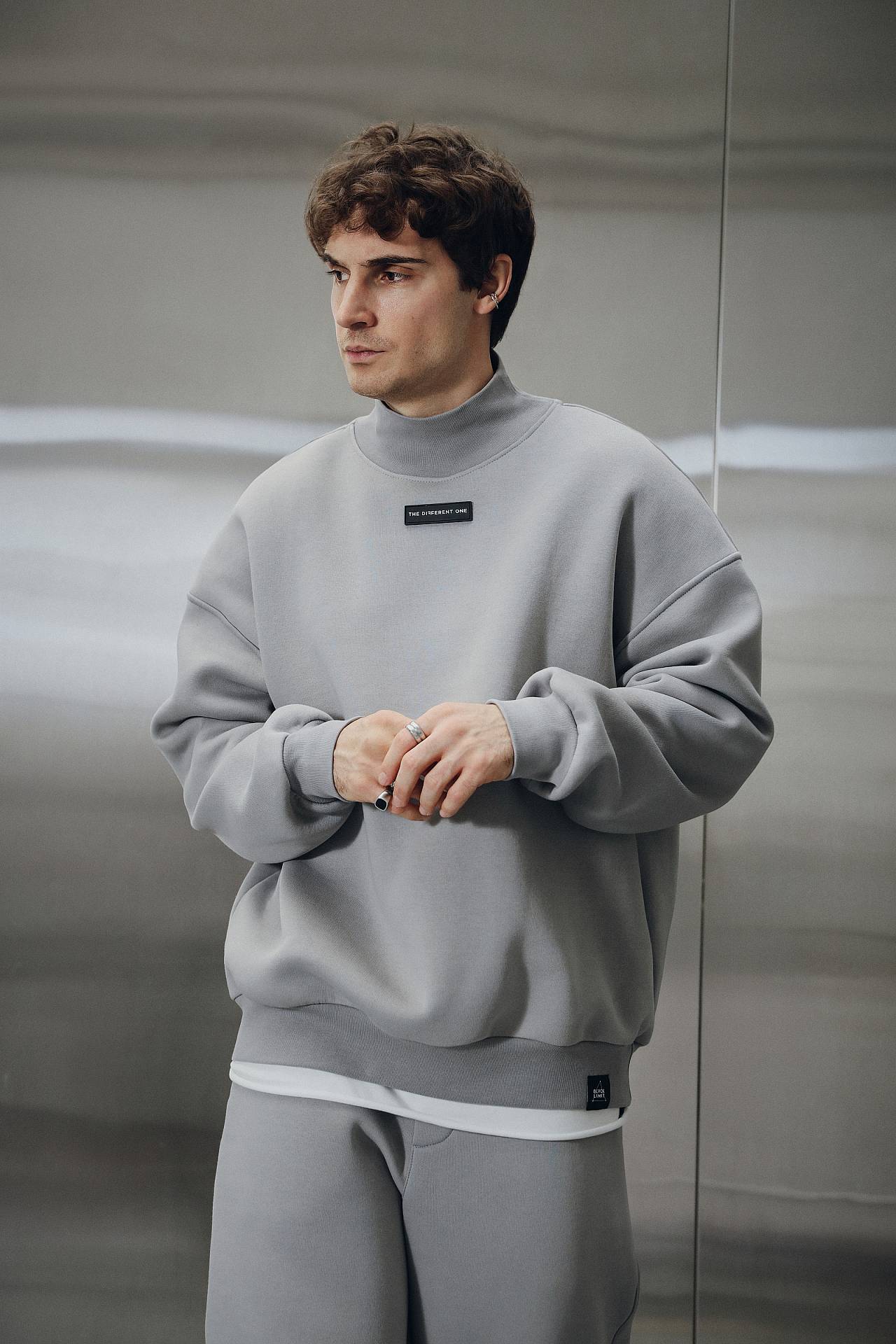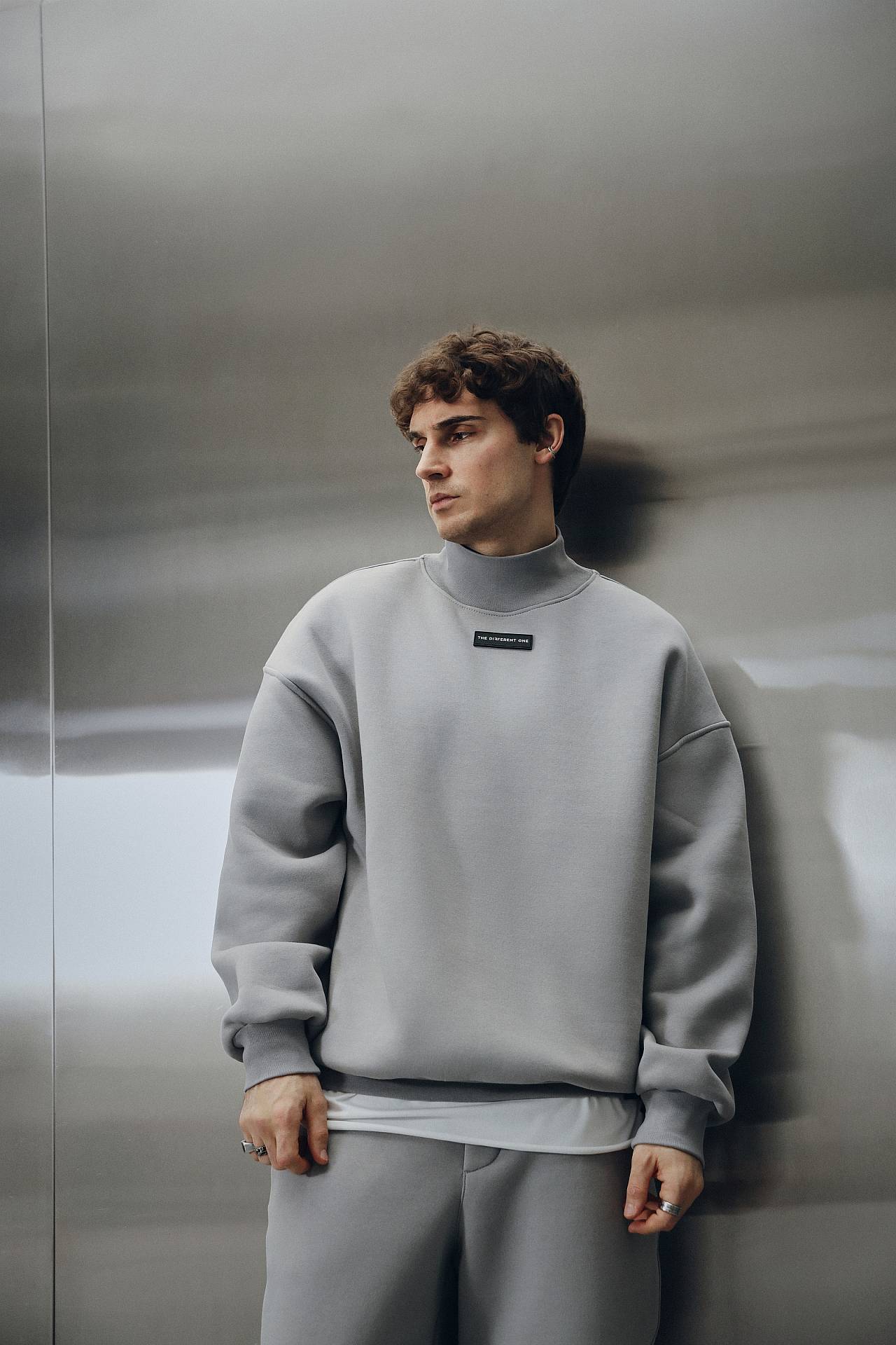 Сет светло-серого цвета из коллекции 4 METALS состоит из свитшота с высокой горловиной и зауженных к низу джогеров.