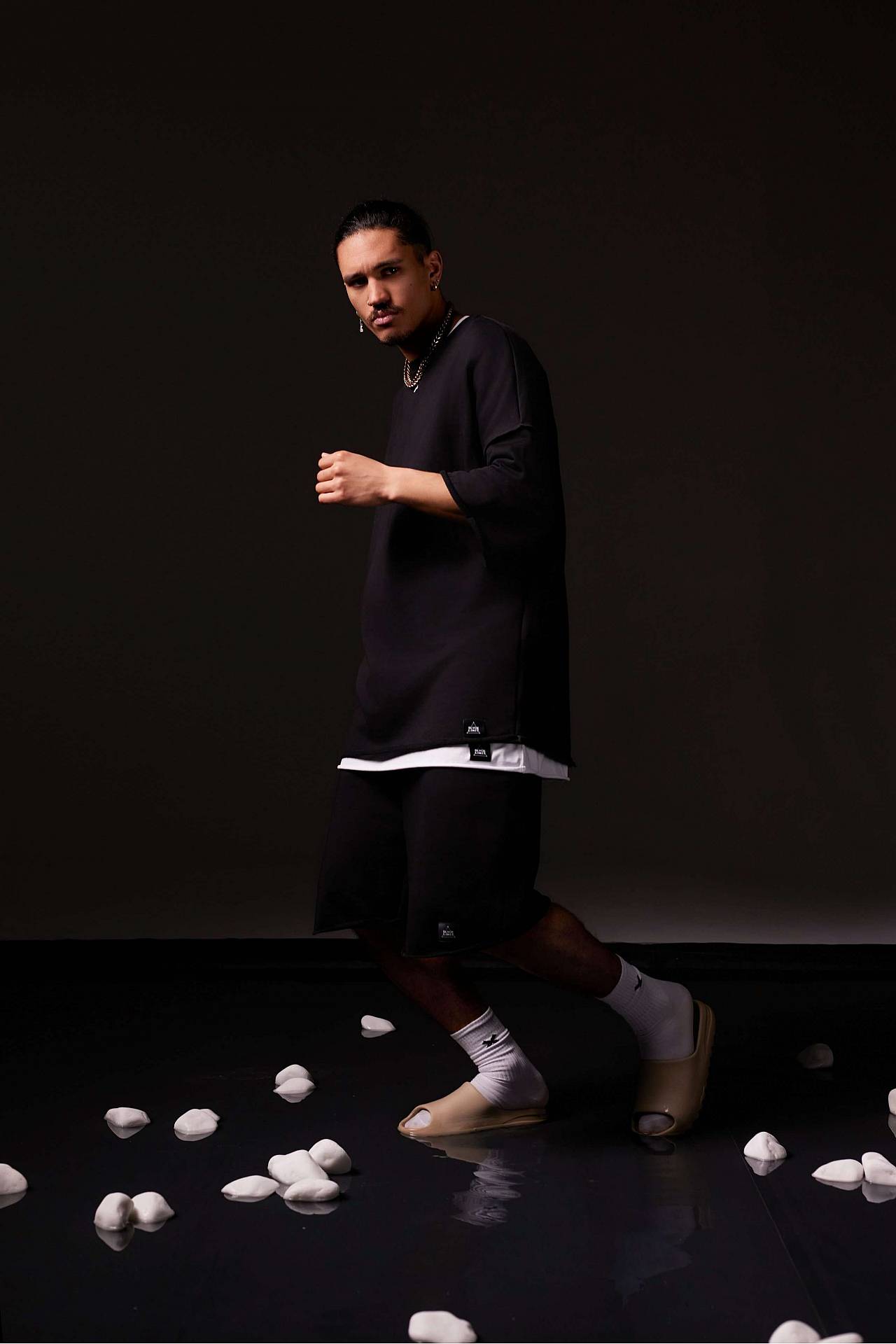 Чтобы сделать более сложным и многослойным образ, мы создали базовые футболки по двум схемам: