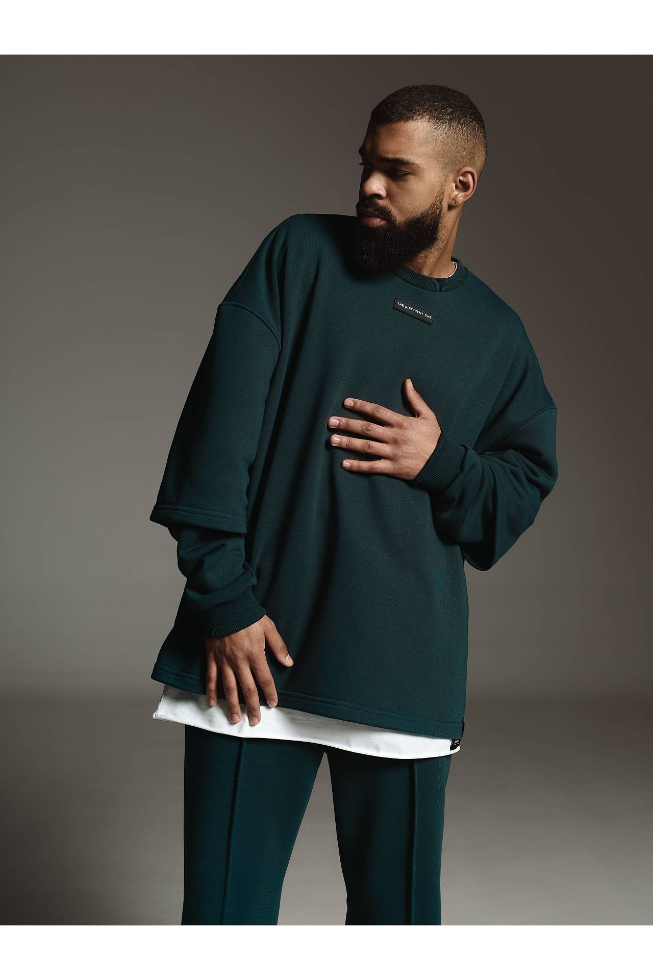 Лонг-футболка имеет oversized fit крой с вшитыми лонгсливными рукавами от плечевого шва, что создает эффект многослойности и одетой футболки поверх лонгслива.