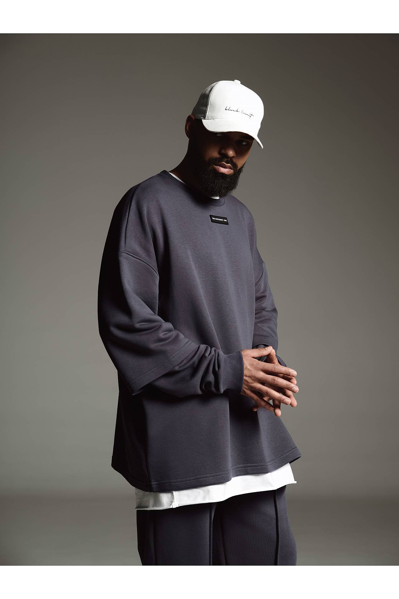 Лонг-футболка имеет oversized fit крой с вшитыми лонгсливными рукавами от плечевого шва, что создает эффект многослойности и одетой футболки поверх лонгслива.