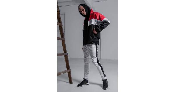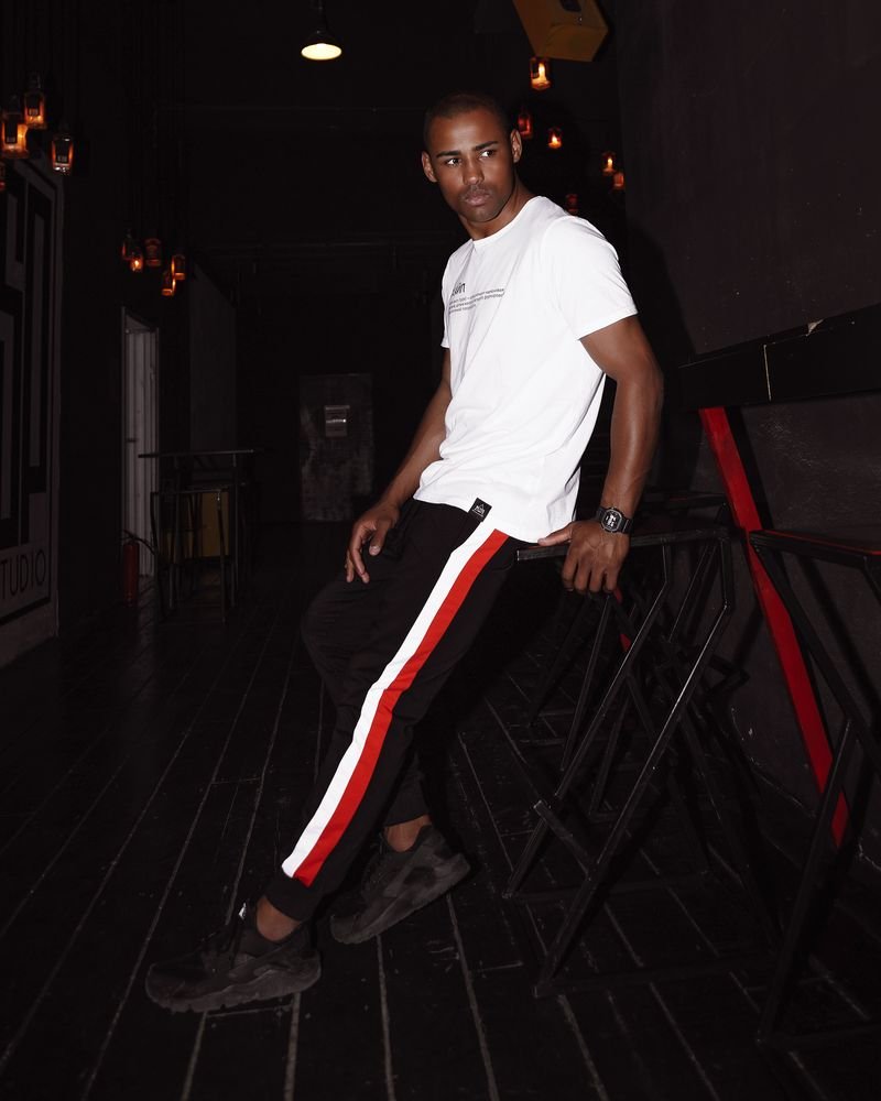 Штаны мужские спортивные черны с красно-белыми лампасами