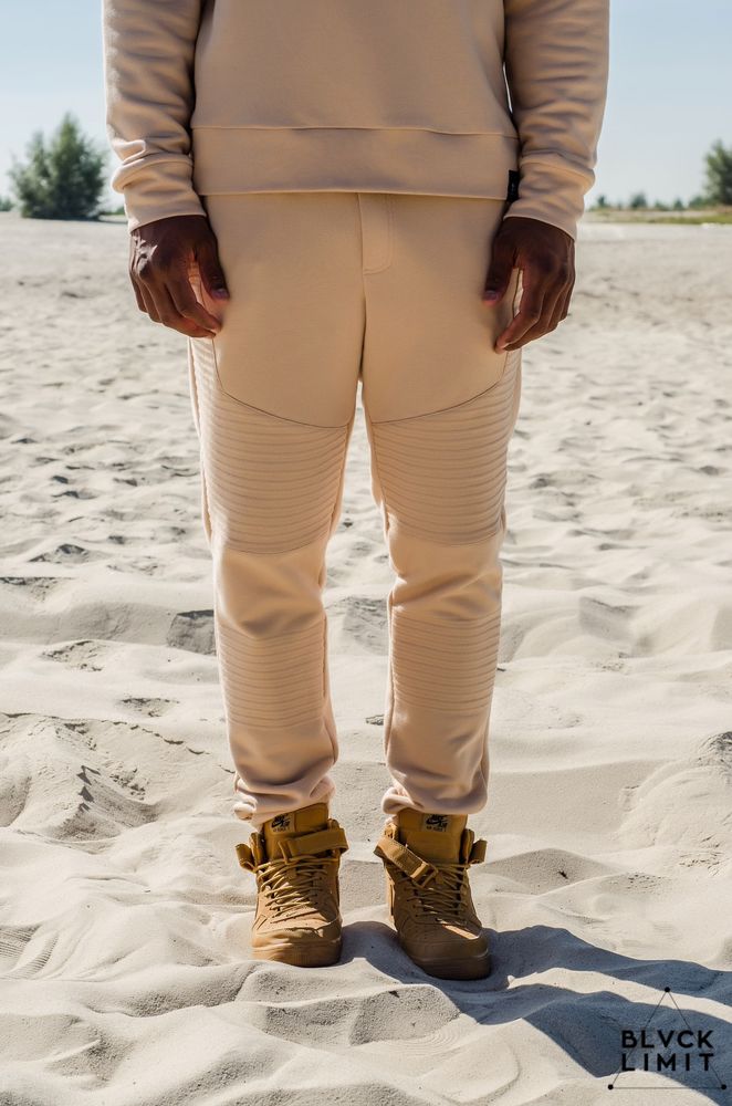 Штаны мужские со стегаными элементами бежевые