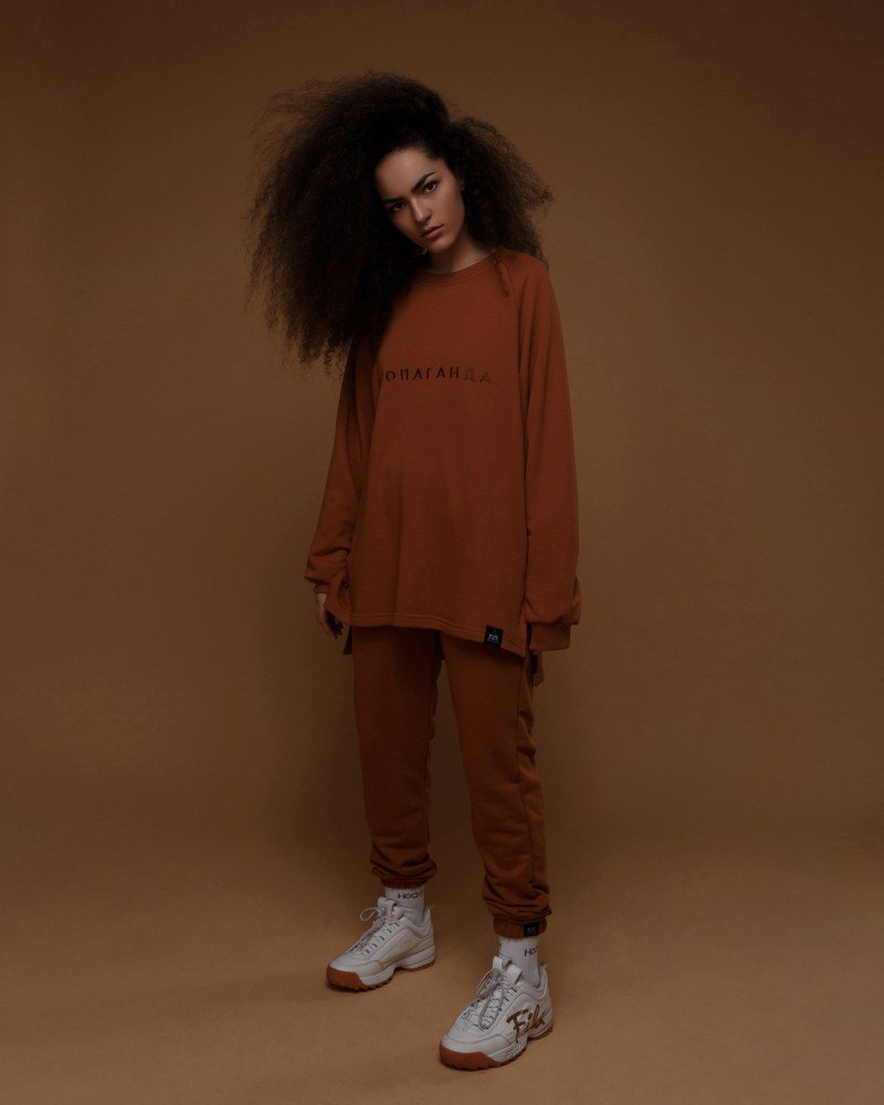 Штаны женские OVERSIZE с вышивкой est. MMXIII - карамель