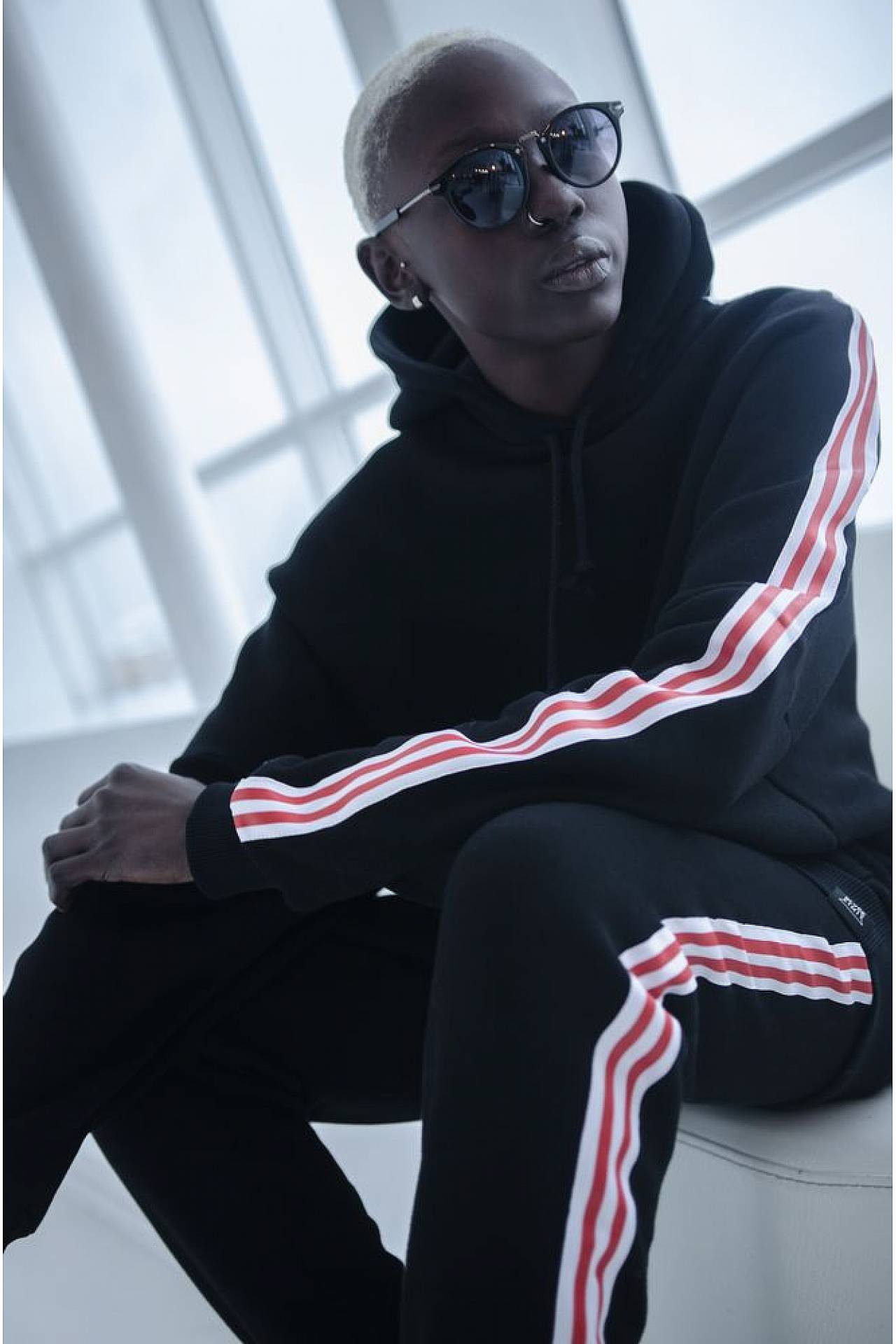 Черные штаны в сочетании с красно-белыми лампасами смотрятся бесподобно. Эти тона дают основу для создания колористической гаммы в луке. А их универсальность дает возможность выбирать одежду любого тона и создавать яркие или сдержанные композиции.