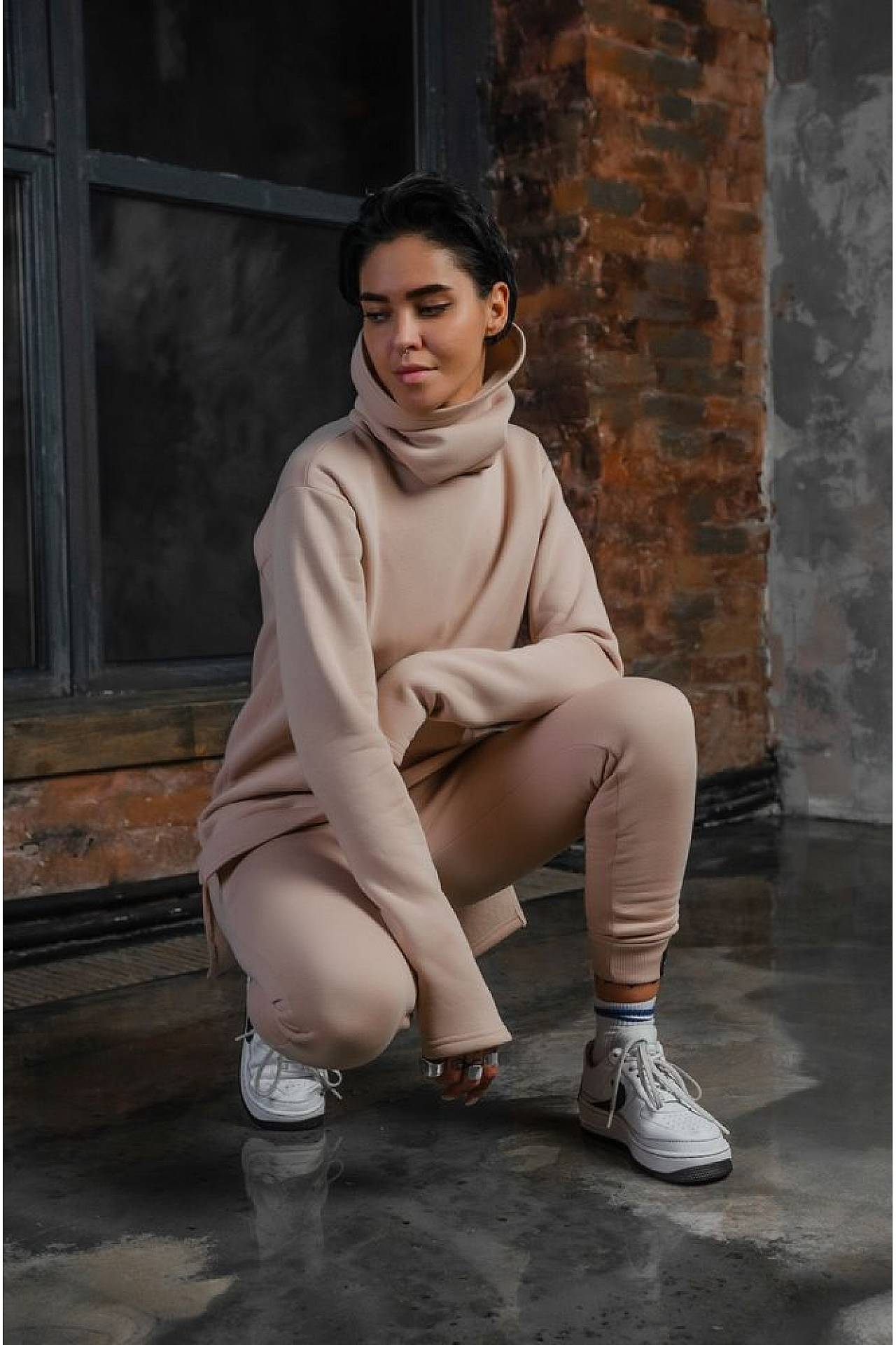 Нежность и женственность способна подарить одежда в бежевом цвете. Милый пудровый оттенок женских спортивных штанов полностью меняет их восприятие. Это не просто одежда для физических занятий. Это элемент умиротворения и духовного спокойствия, на основе которого может быть сформирован любой удобный лук.