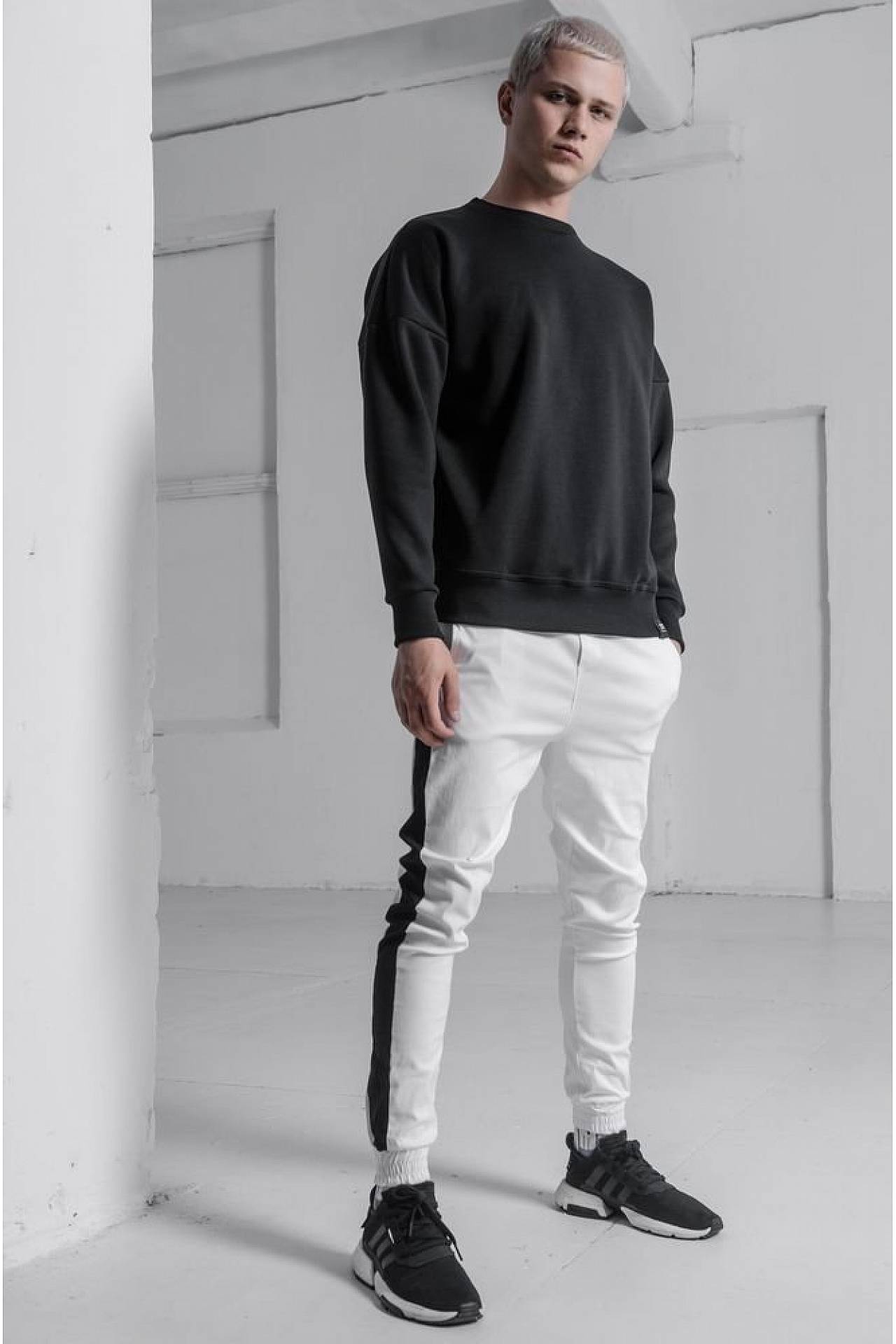 На модели – белые штаны с лампасами из нашей коллекции. А если ты хочешь надёжно защититься от любого мороза – возьми её нашу тёплую куртку!